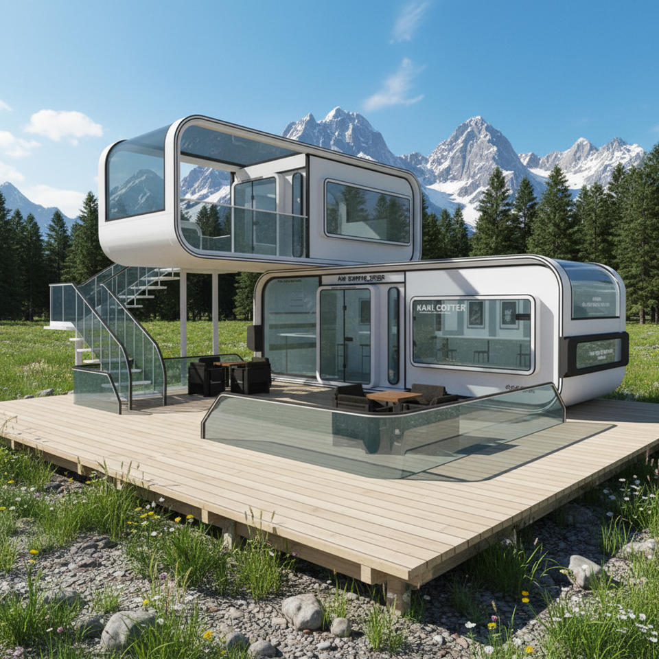 Capsule spatiale moderne mobile à double couche, conteneur polyvalent pour café, bureau, bureau de poste, salle de repos, ou usage professionnel - Cabine Apple