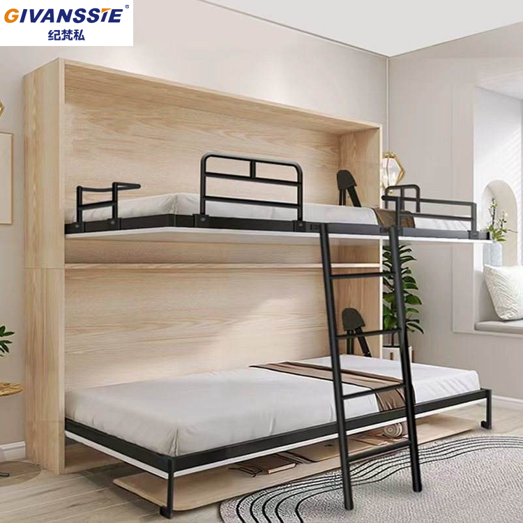 Lit escamotable invisible Space Magician avec mécanisme de levage, cadre en bois, design moderne pour auberge et dortoir - Tailles : Double/Queen/King/Twin
