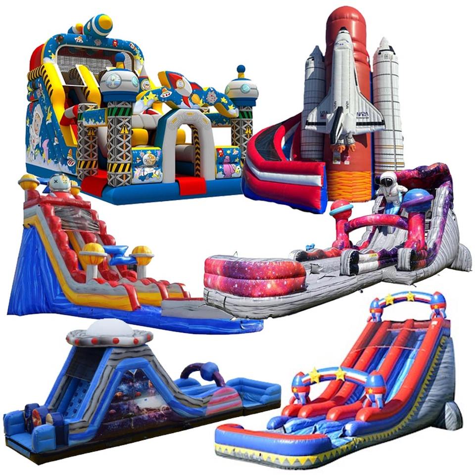 Toboggan Gonflable Galaxie Nébuleuse Astronaute Navire Spatial Fusée Glissade Aquatique