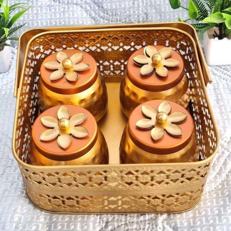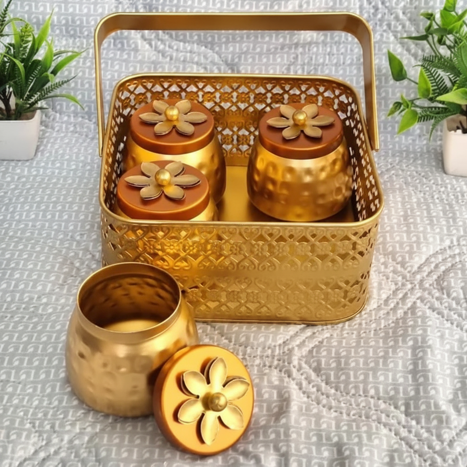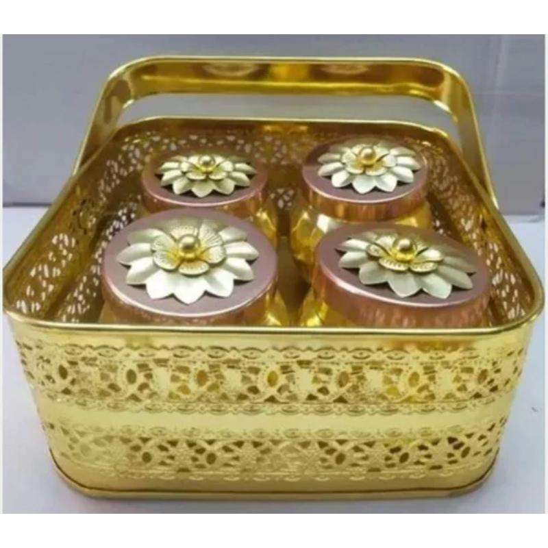 Boîte à fruits secs en métal peu encombrante avec panier offrant un rangement pratique pour les collations aux fruits secs et plus encore