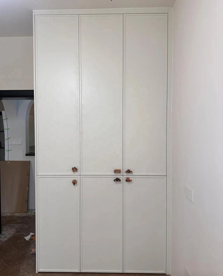 Armoire peu encombrante avec rangement dissimulé et poignées originales, idéale pour les petites chambres et les chambres d'enfants