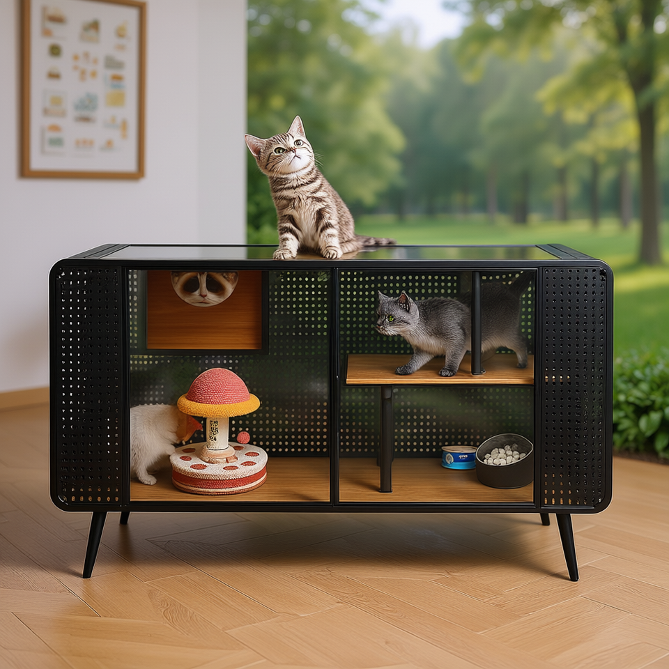 Mobilier moderne pour animaux de compagnie en verre trempé Cat House D0100H71U82 de 55,12 pouces pour salon, couloir et espaces de travail