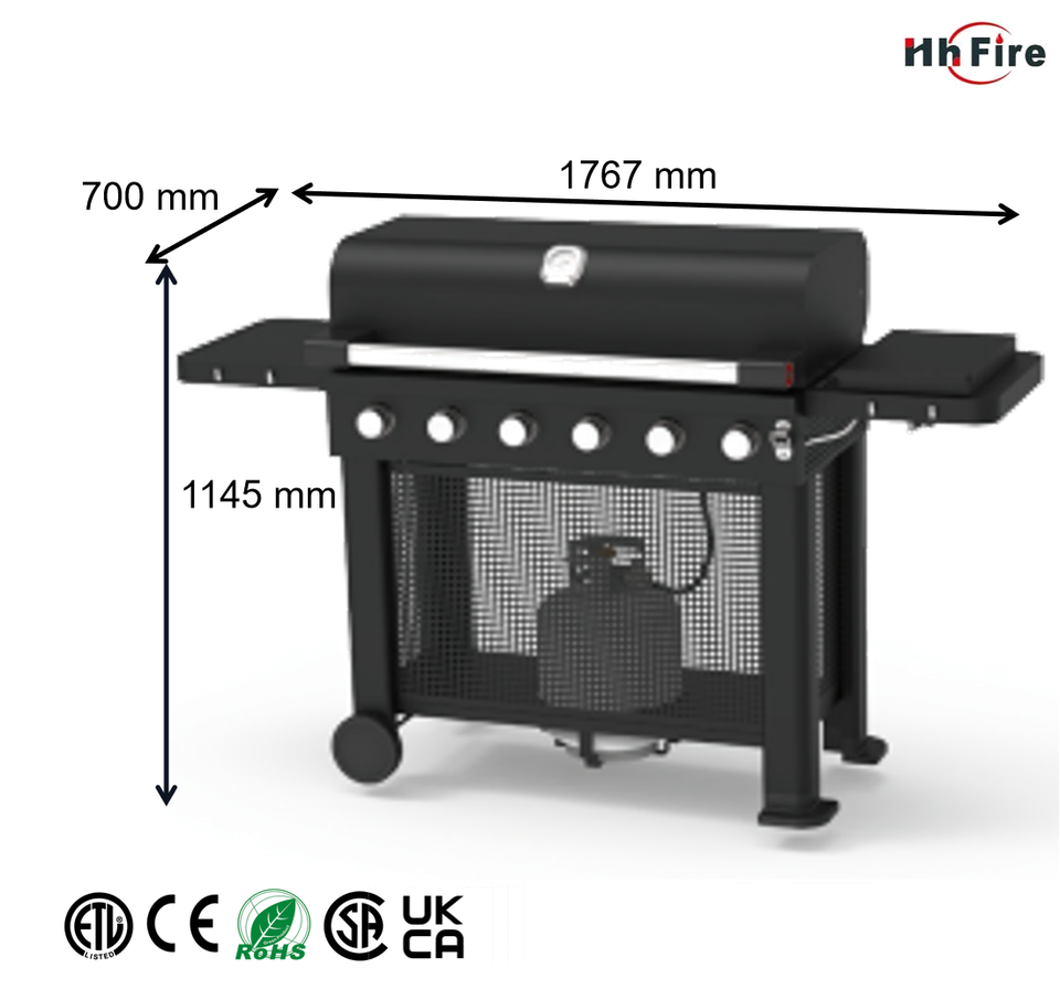 Zone de cuisson spacieuse facile à utiliser, allumage, plancha professionnelle autoportante, barbecue à gaz