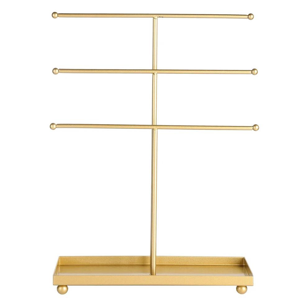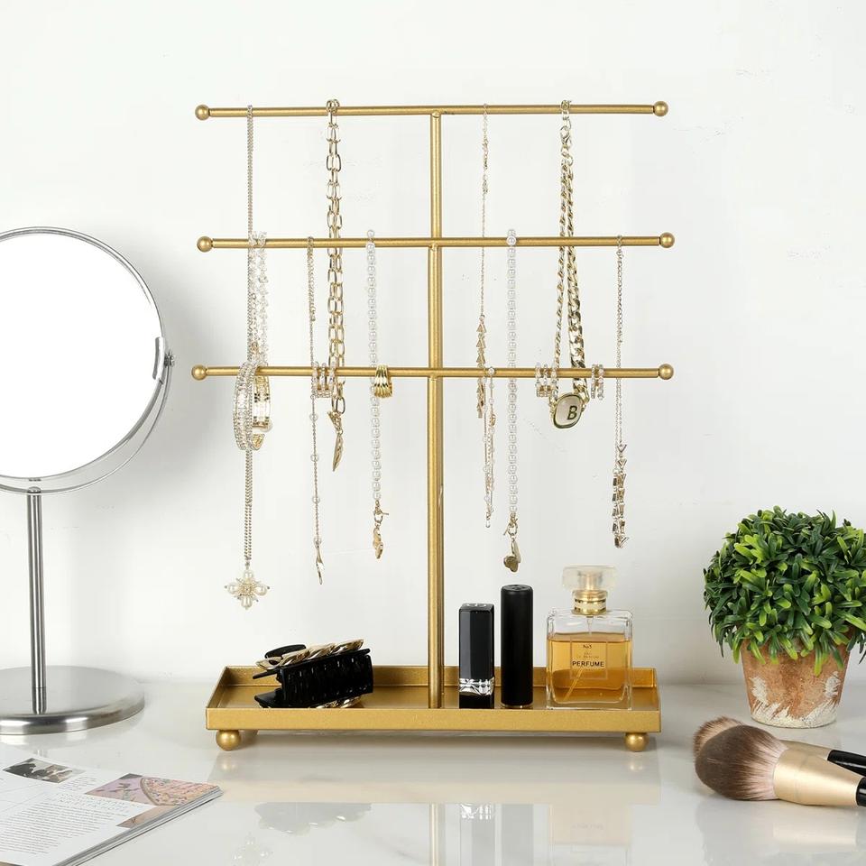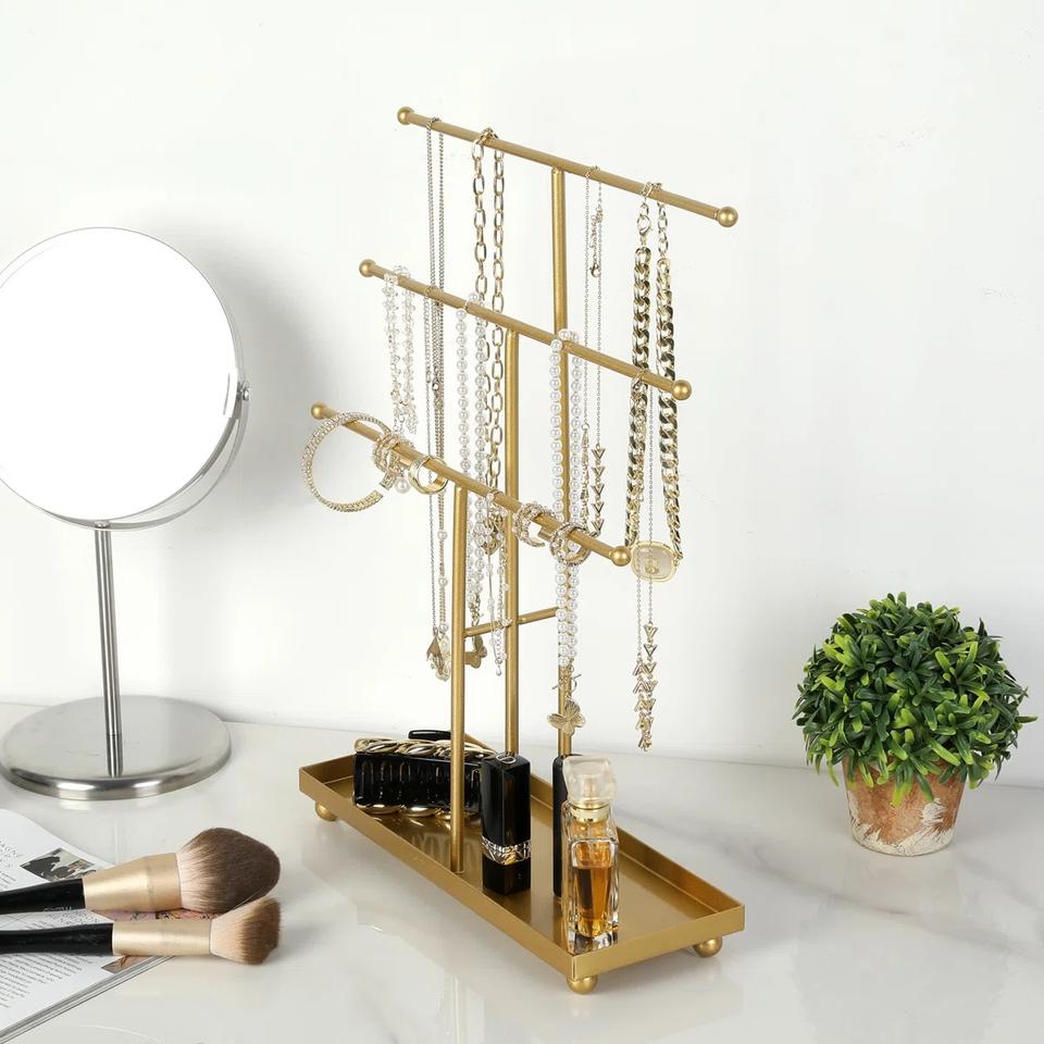 Présentoir à bijoux spacieux à plusieurs niveaux avec triple barre porte-colliers et plateau large – Élégant et optimisé pour une présentation sans désordre sur la coiffeuse