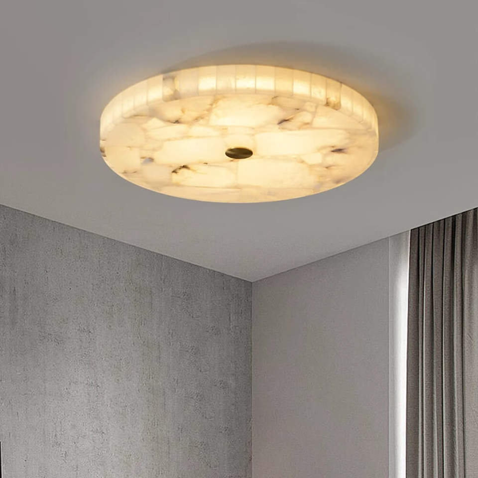 Espagnol Cuivre Marbre Chambre Plafonnier Moderne Simple Luxe Chambre Ronde Balcon Lampe Laiton Albâtre Lustre Plafonnier