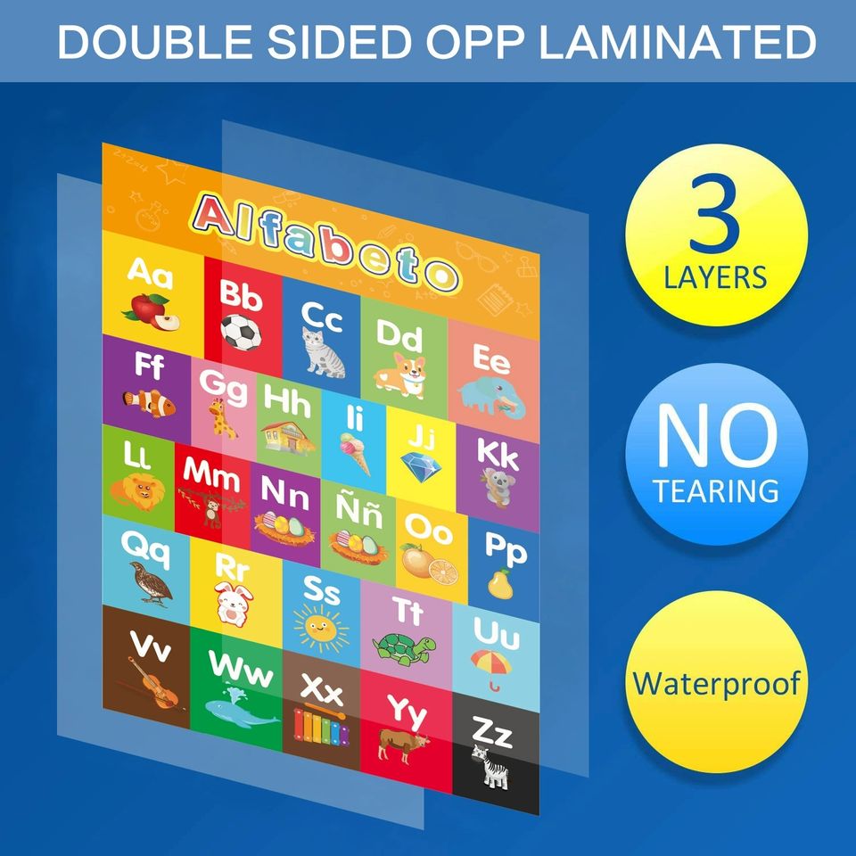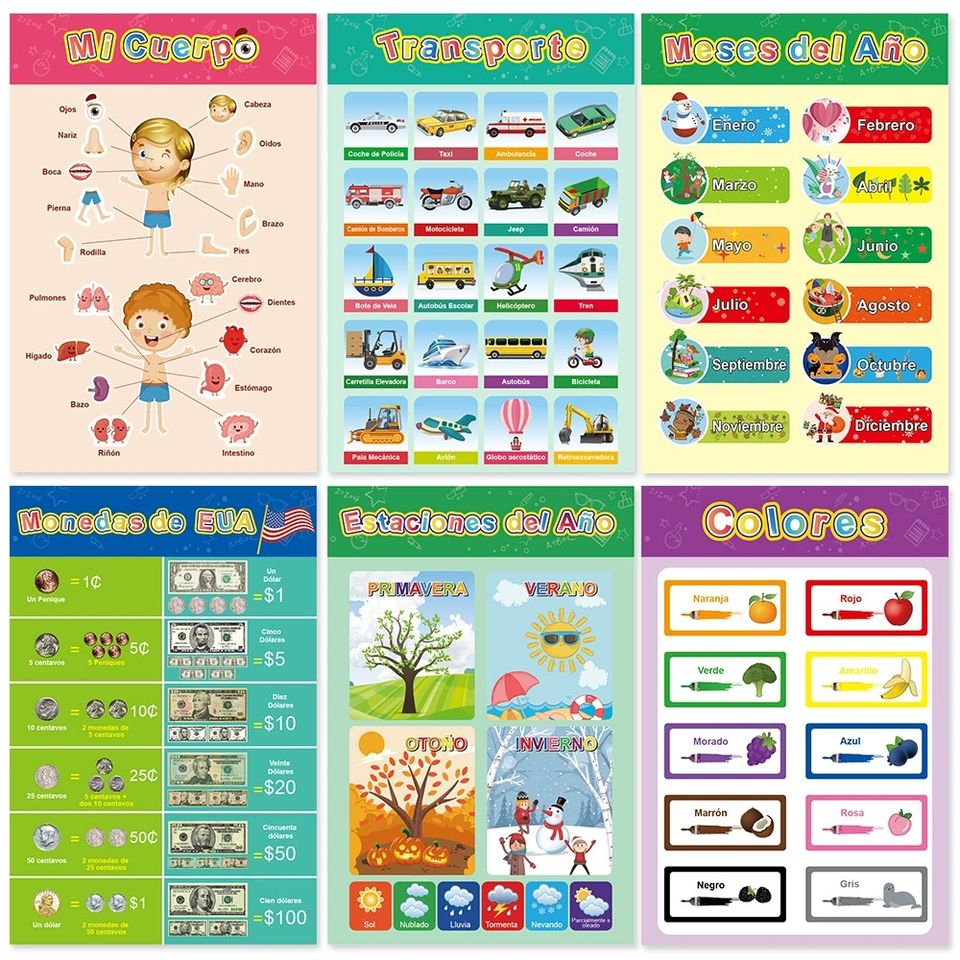 Affiche éducative pour l'apprentissage précoce de l'espagnol, décoration murale pour l'apprentissage des langues et le développement cognitif, tableau non sonore