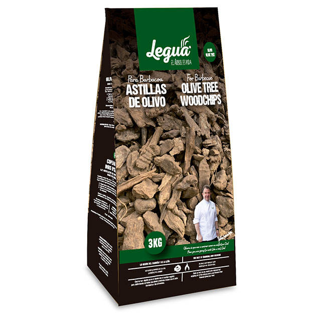 Spanish LEGUA High Quality Olive Tree Hard Wood Woodchips (Splinters) 3kg Bag for BBQ Cook & Smoke Fast & Clean 4% Ash Content