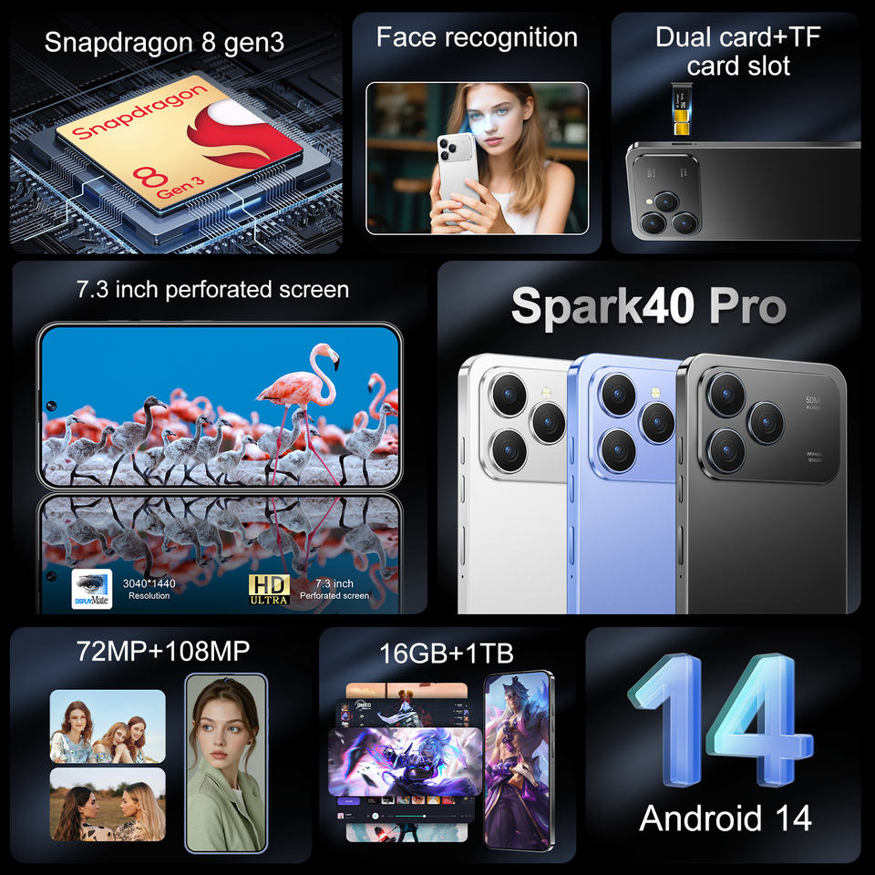 Spark40 Pro Tecno+ 5G Téléphone Jio Débloqué Double SIM Grande Mémoire Nouveau Téléphone Portable avec Google Play