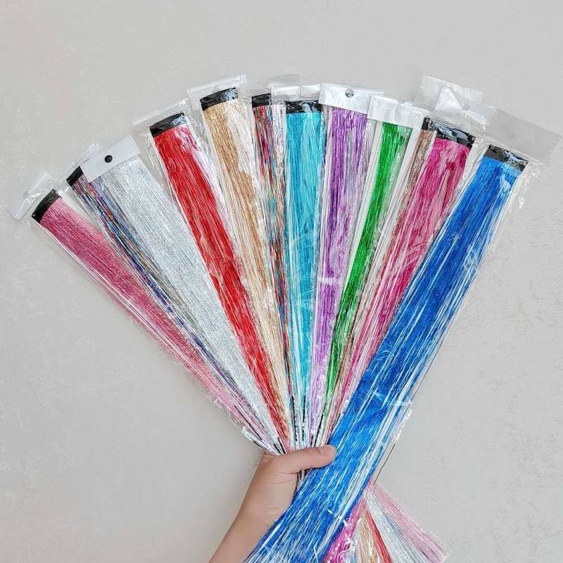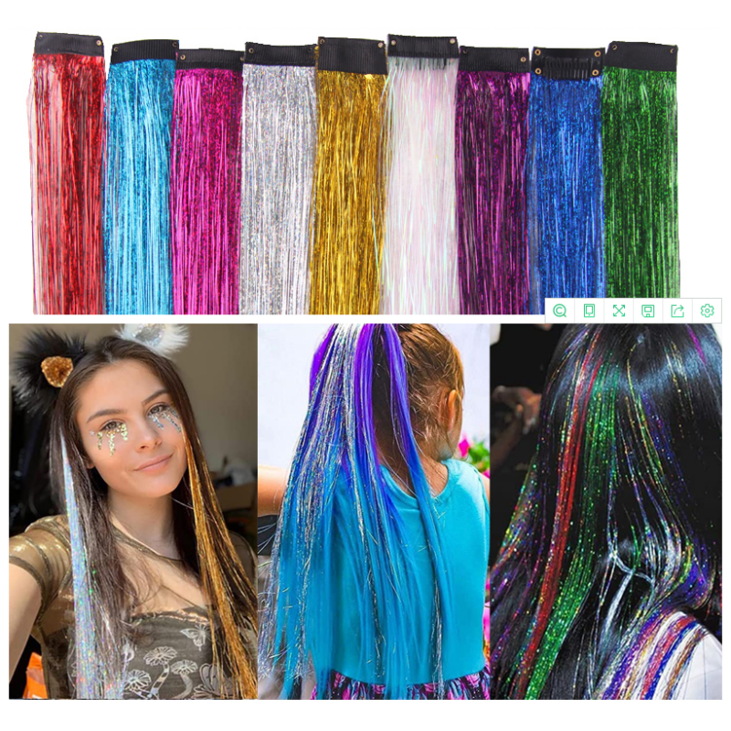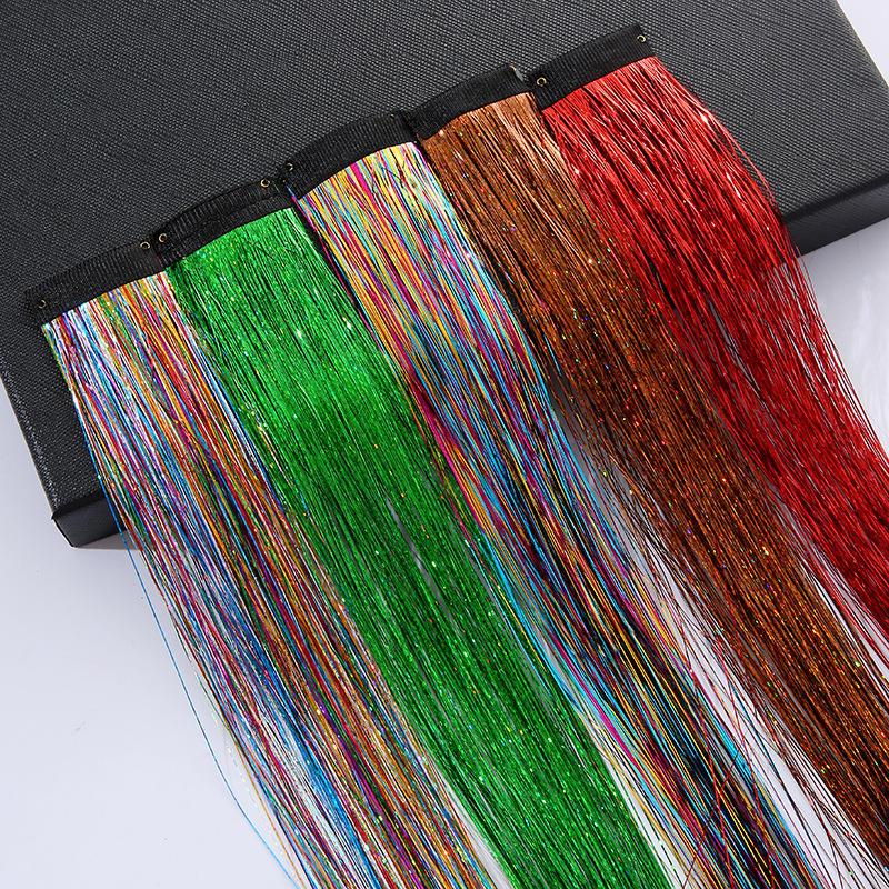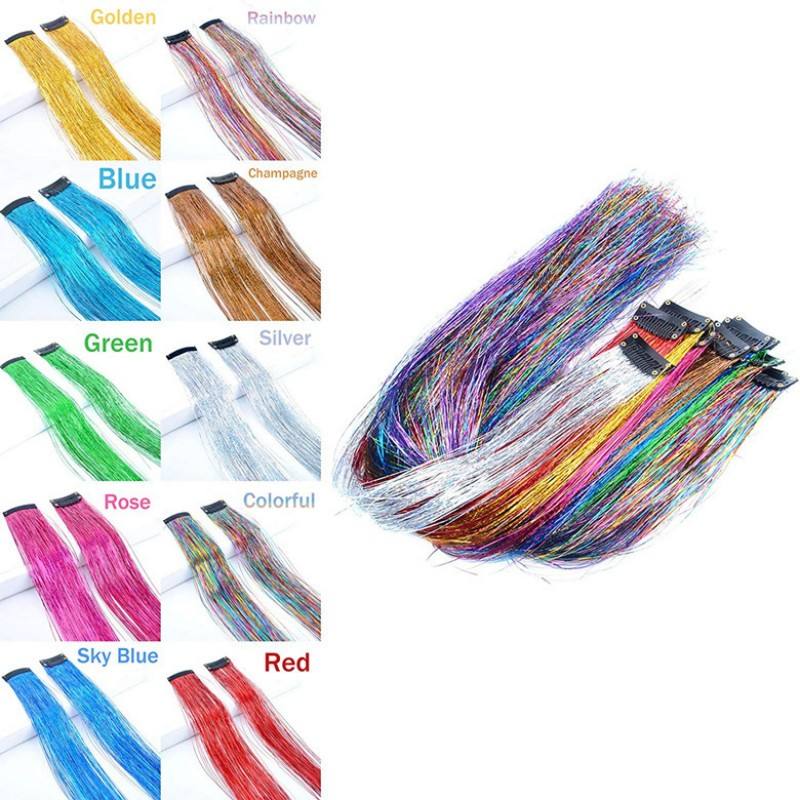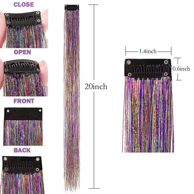 Sparkle Tinsel Clip Extensions de cheveux pour femmes Glitter Party Accessoires de cheveux Rainbow Colored Bling Hair Piece