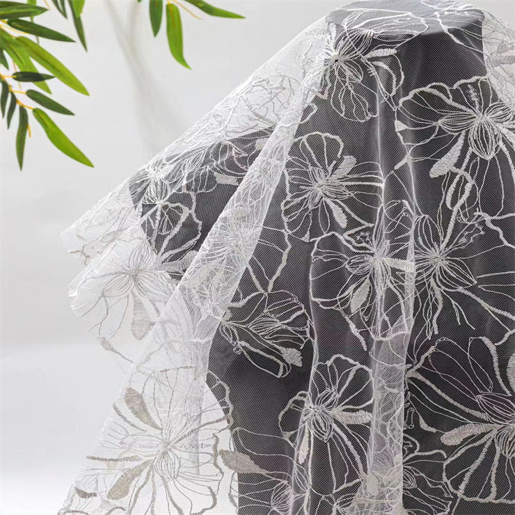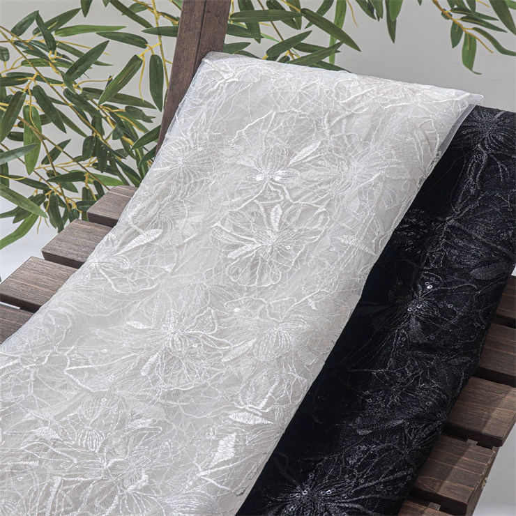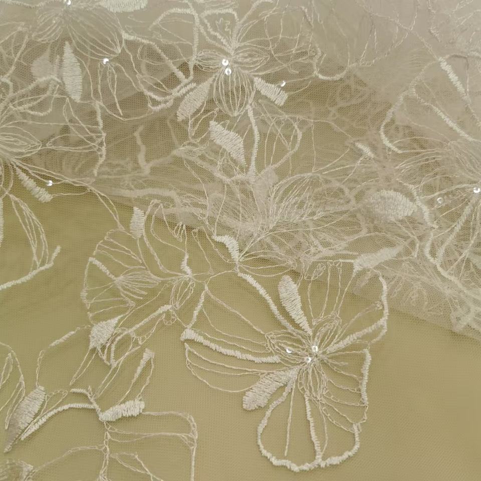 Tissu en voile à paillettes et sequins, ruban en maille, broderie florale, dentelle pour robes de mariée et robes de soirée pour femmes 100%