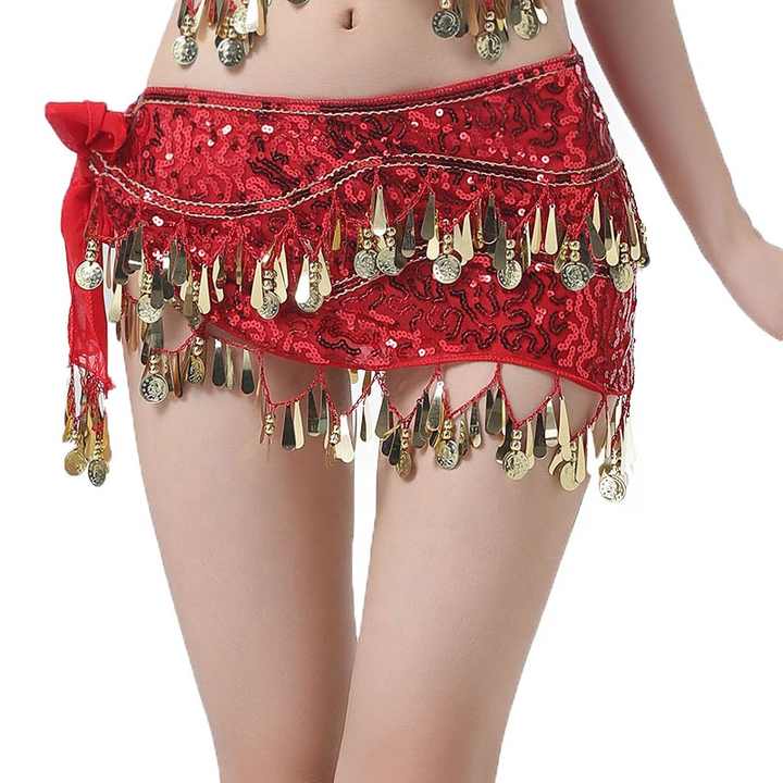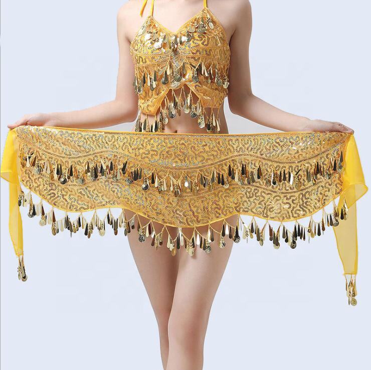 Chaîne de jupe de taille à paillettes ondulées élégantes à deux rangs pour la danse du ventre