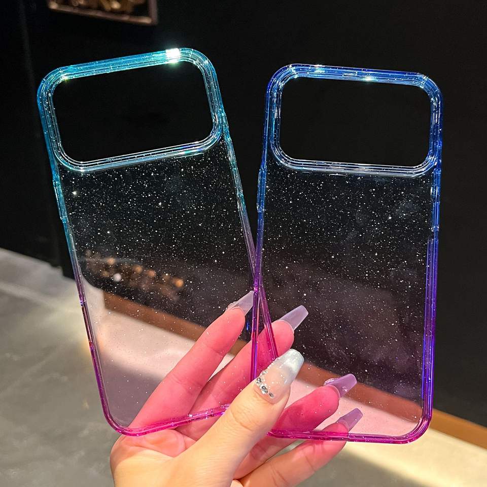 Étui de téléphone de luxe étanche brillant en TPU+PC à dégradé scintillant pour 17 16 15 13 12 Pro Max Blocage des couleurs Haute transparence