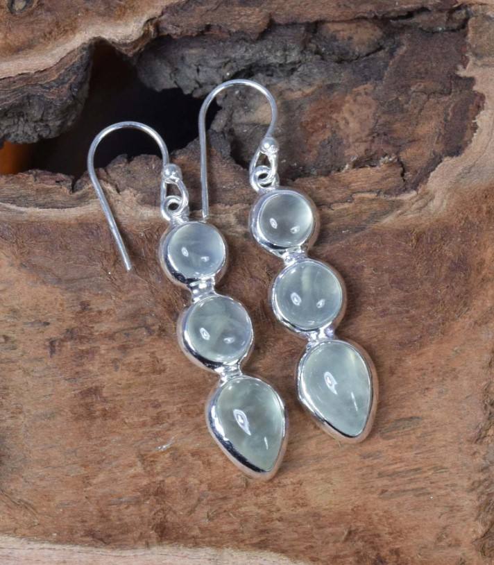 Product Name:Natural Prehnite Gemstone Silver Earrings