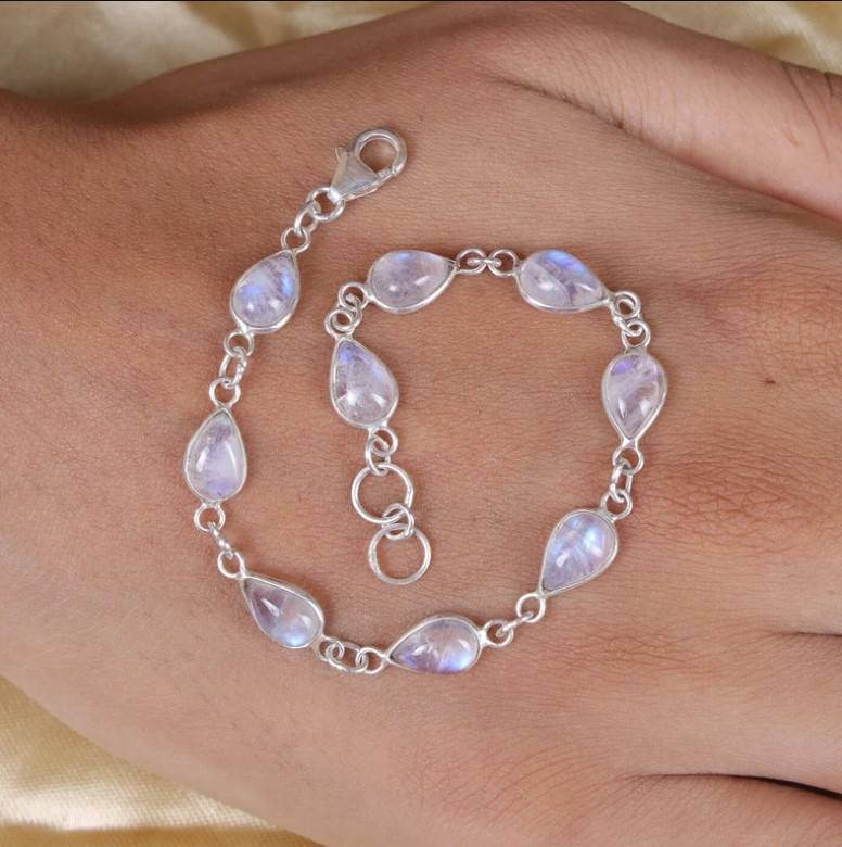 Product Name:Natural Rainbow Moonstone Gemstone silver bracelet