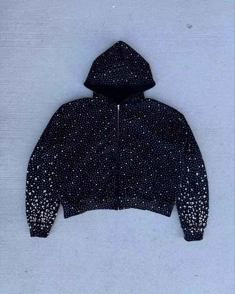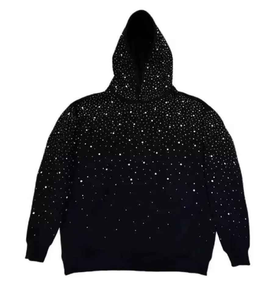 Sweat à capuche unisexe surdimensionné personnalisé avec strass étincelants, en tissu polaire écologique, confortable et chaud, idéal pour le style urbain en hiver