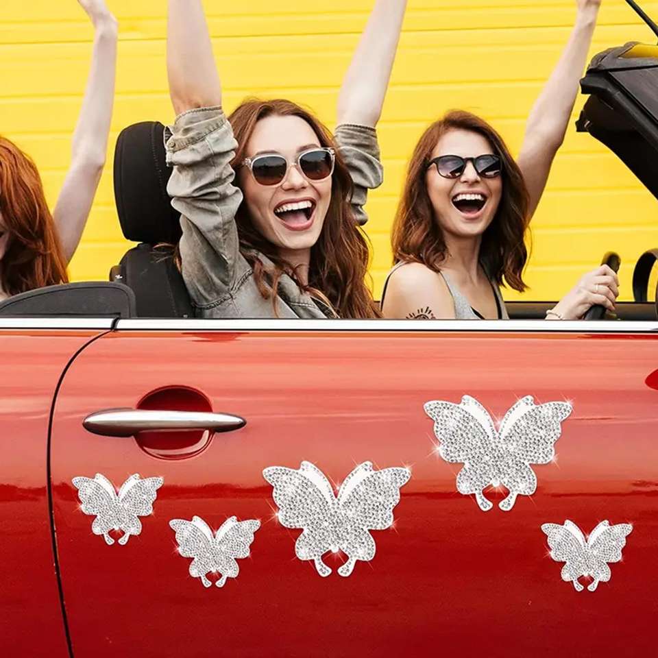 Lot de 2 autocollants papillon scintillants en plastique avec strass, décorations adhésives pour l'intérieur des véhicules