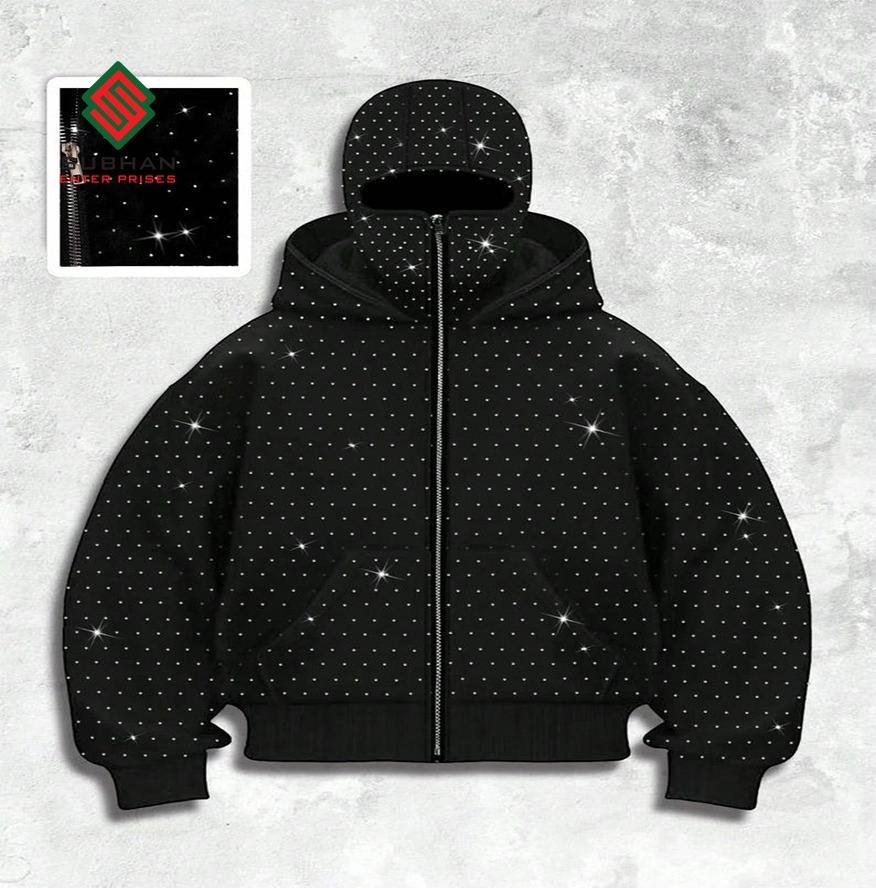 Sweat-shirt à capuche orné de paillettes avec poches, streetwear, sweat-shirt à capuche avec fermeture éclair intégrale