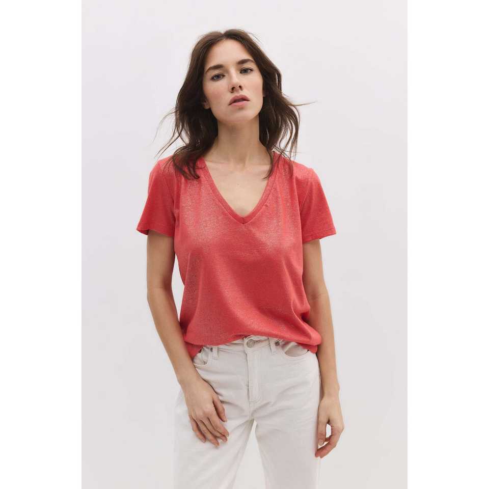Tissu scintillant, col en V, basique
