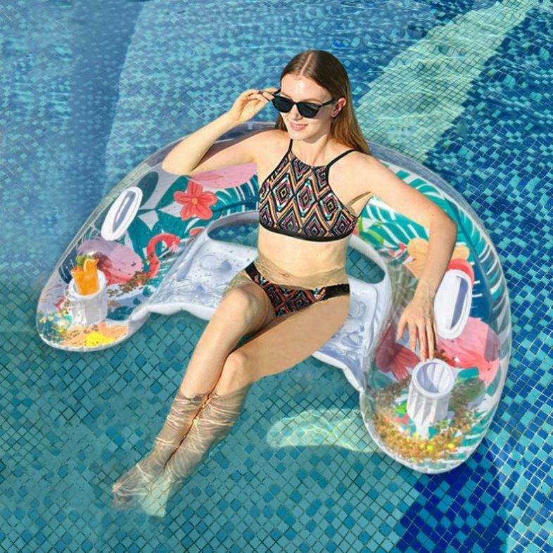 Transat gonflable Flamingo scintillant en PVC souple écologique pour adultes – Idéal pour l'été