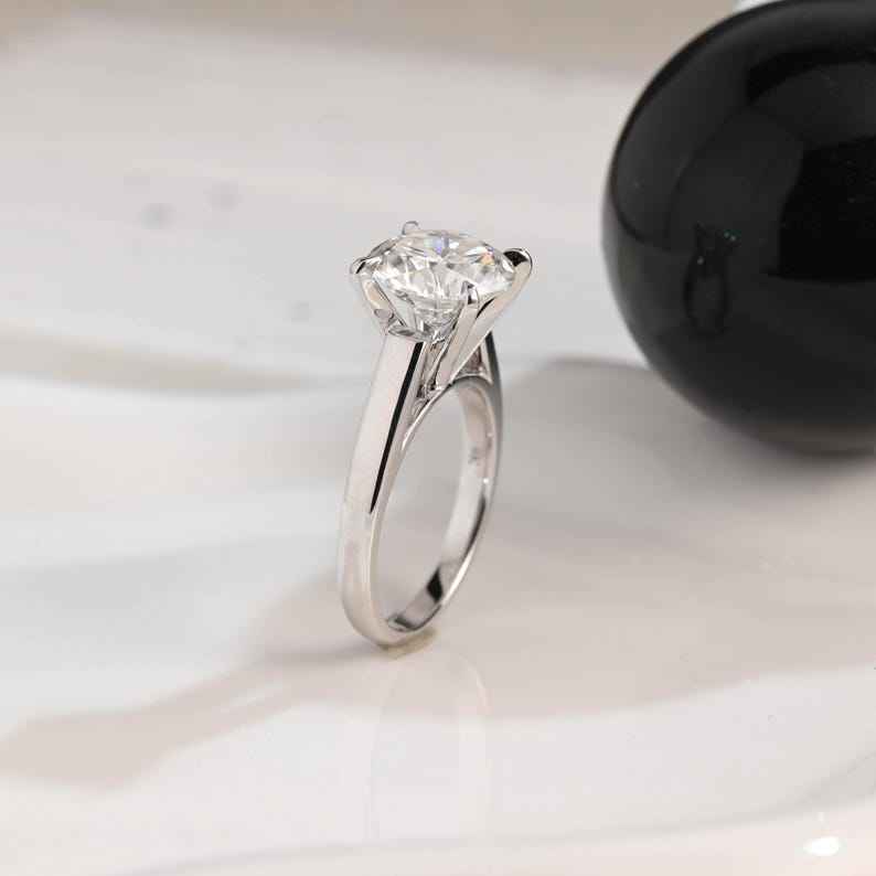 Bague solitaire de promesse en diamant rond de 2,02 carats, cultivé en laboratoire, scintillant, pour femme, en or blanc 14 carats, cadeau de mariage pour la mariée