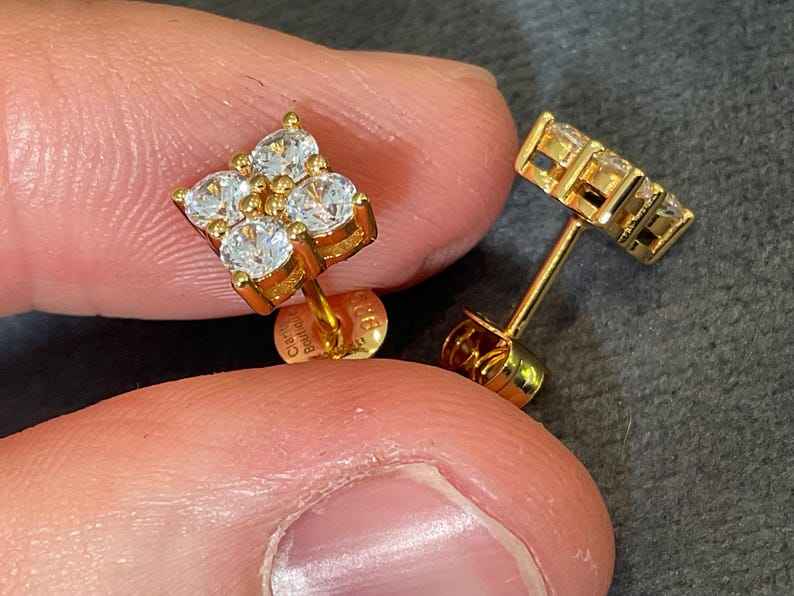 Boucles d'oreilles clous de fiançailles en diamant de laboratoire taille ronde étincelant, or massif 14 carats, bijoux élégants et classiques pour femme, cadeau pour mariage