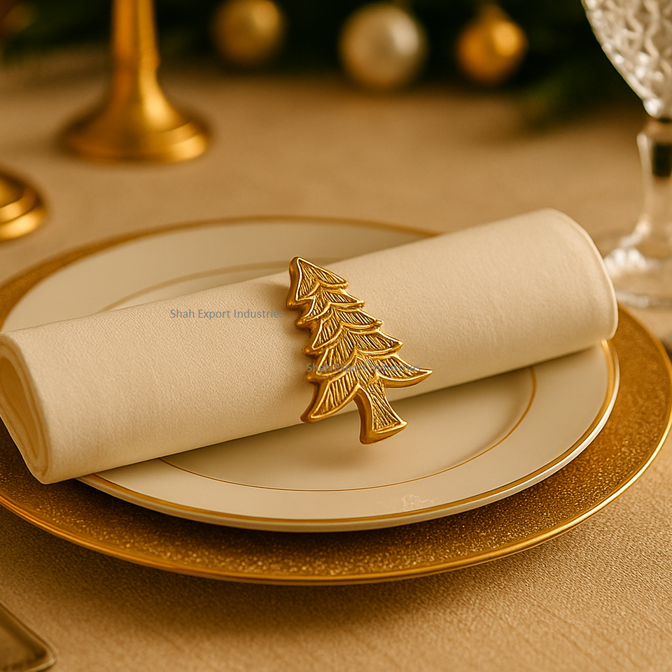 Scintillant et brillant doré X Mas arbre rond de serviette en métal pour événement de noël dîner Table réglage décoration porte-serviettes
