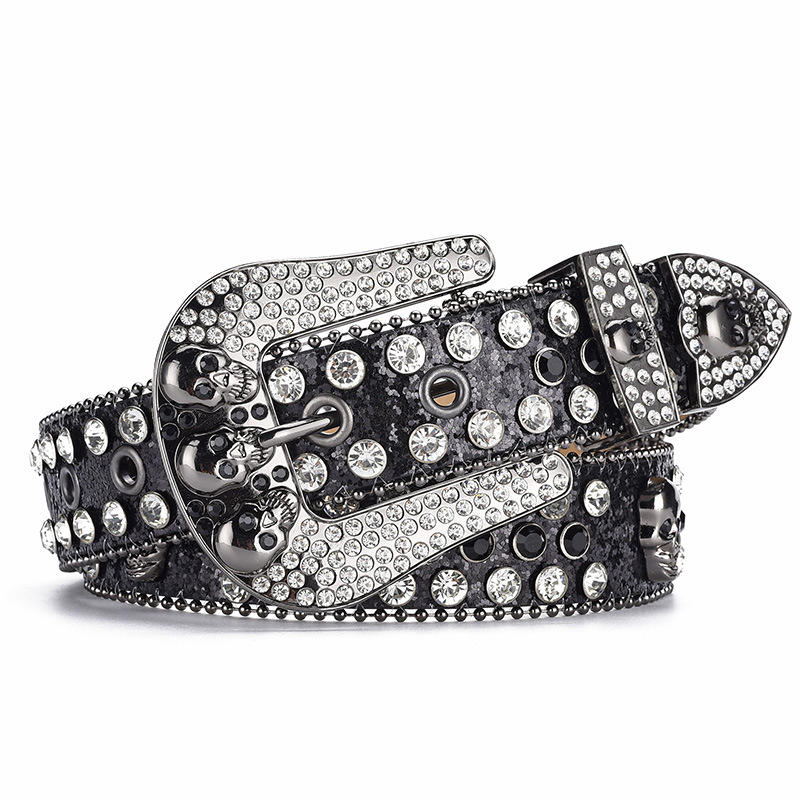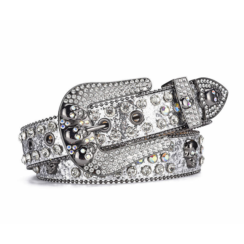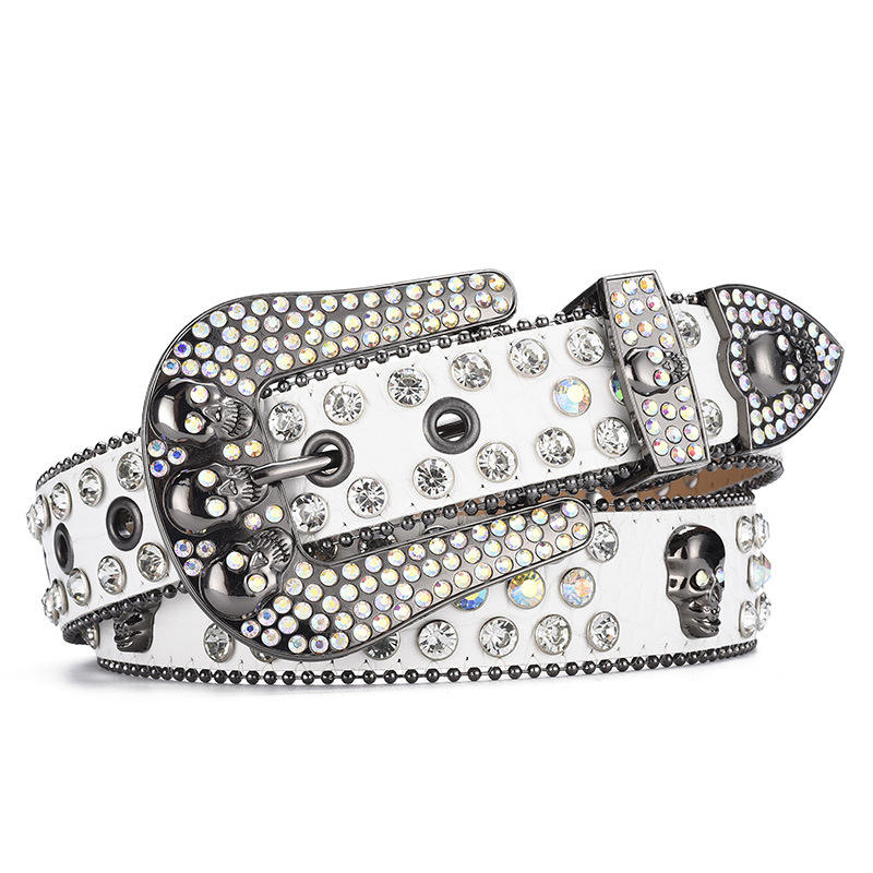 Sparkly Skull Buckle Bb Simon Rhinestone Belt pour hommes femmes Bling Bling magnifique et robuste Western Diamond Crystal Belt Vendeur