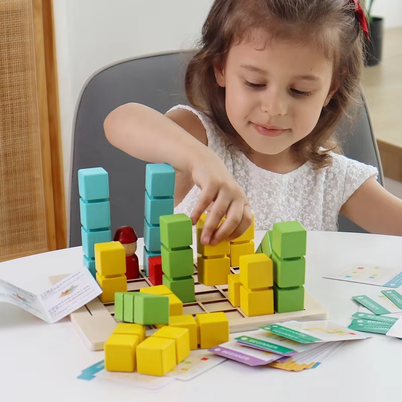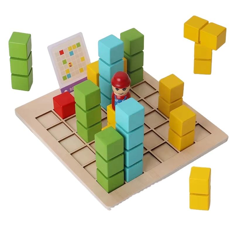 Blocs de construction de pensée spatiale Éducation précoce des enfants Jeu de cube de table Little Porter, jouet éducatif et de développement en bois
