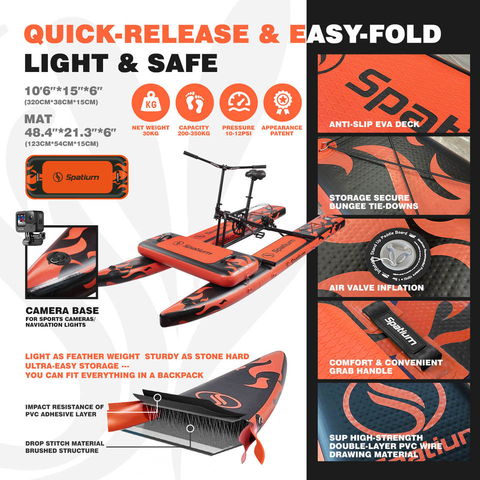 Vélo aquatique Spatium certifié CE, sûr et stable, facile à ranger, extensible, pour débutants, location commerciale pour clubs en bord de mer