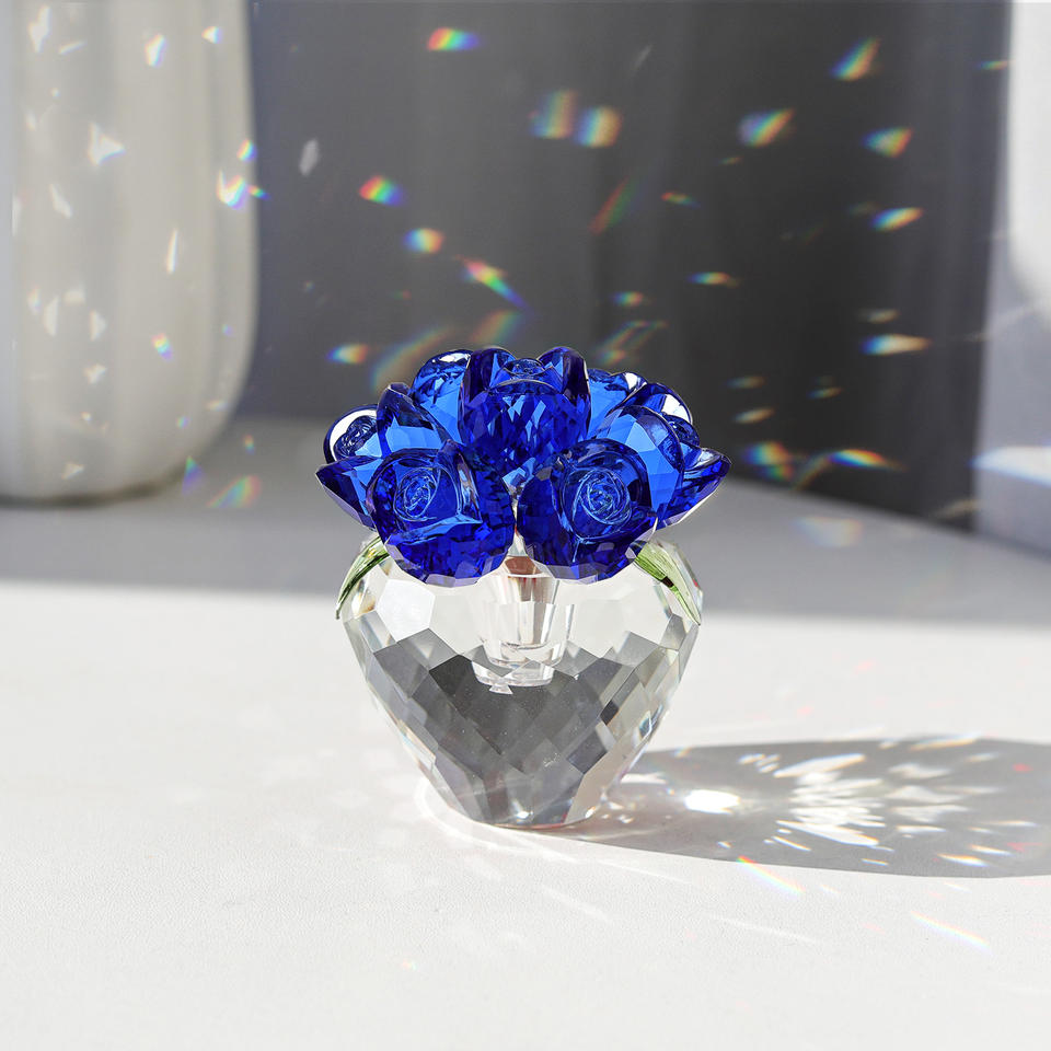 Special Crystal Blue Color Flower Gifts for Mom Wife Girlfriend Glass Flower Ornaments for Home Office Tabletop Paperweight