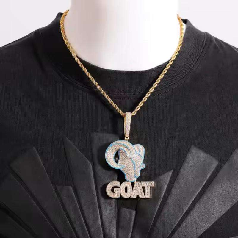 Pendentif Hip Hop personnalisé spécial en forme de chèvre entièrement serti de diamants, moissanite ronde brillante et baguette, diamants VVS, argent sterling 925
