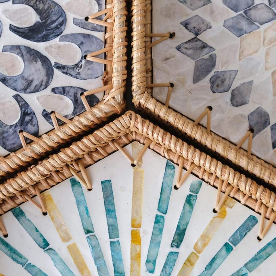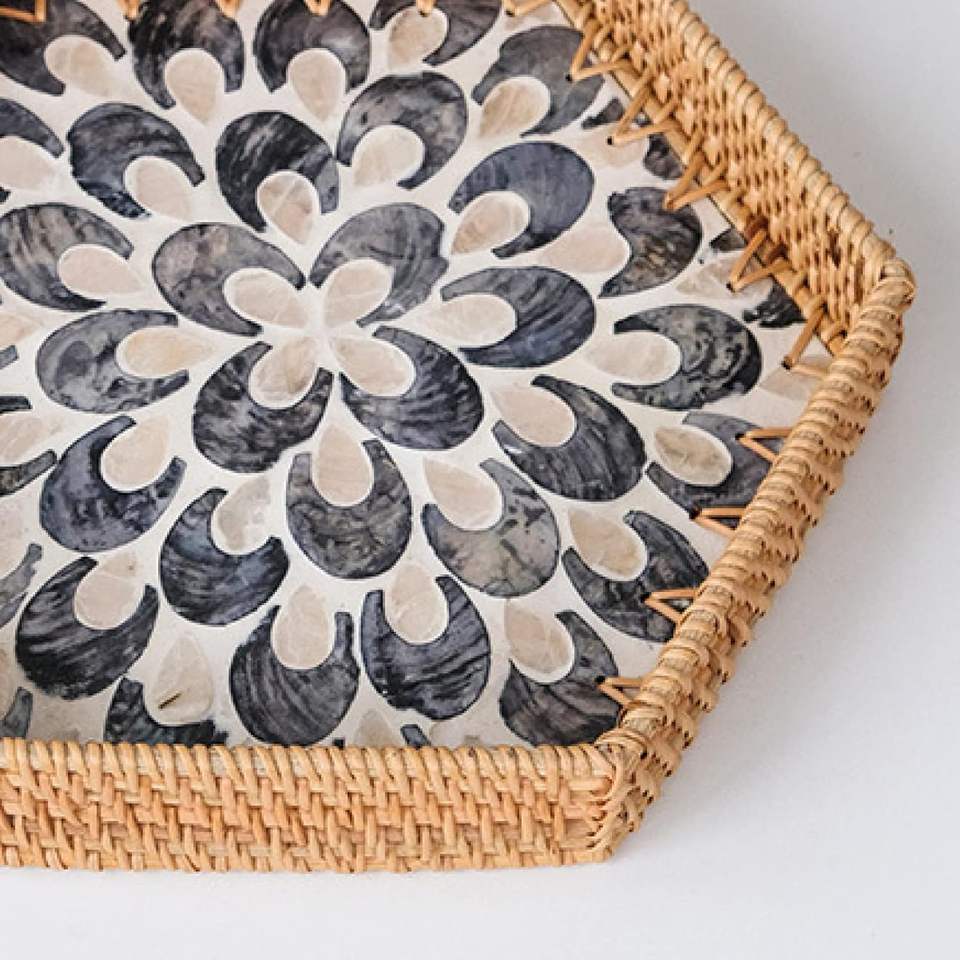 Plateau de rangement de cuisine en rotin écologique au design spécial, à un seul niveau, multifonctionnel, pour fruits, boissons et aliments, avec motif coquillage complexe