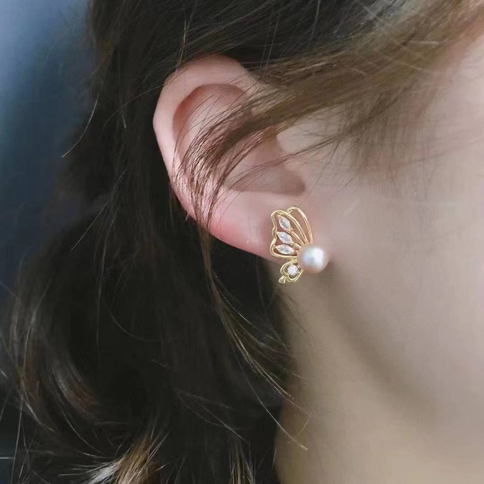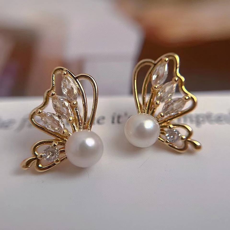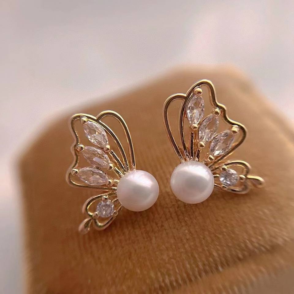 Special Offer 14K Gold-Plated Butterfly Earrings with Natural Freshwater Pearls Pure Silver Crystal Earrings