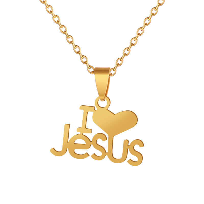 Special Offer I Love You Jesus Heart Necklace Jewelry Gold Electroplate Pendant Necklace Chain Stainless Steel For Unisex