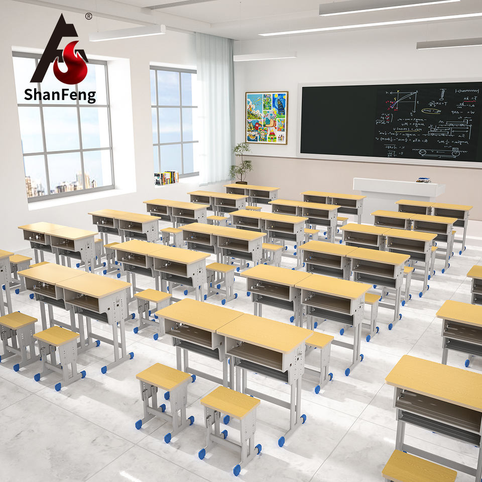Offres spéciales Table sans dossier pour 2 personnes Fournitures scolaires Bureau et chaise d'école à hauteur réglable en Chine