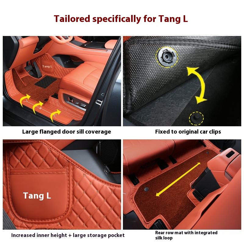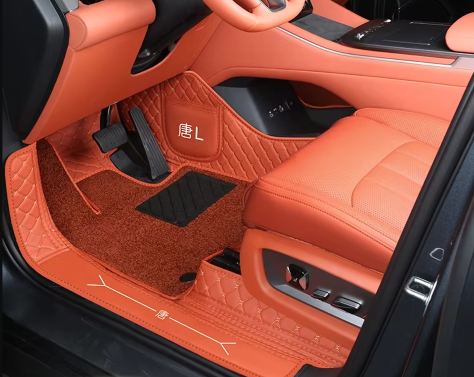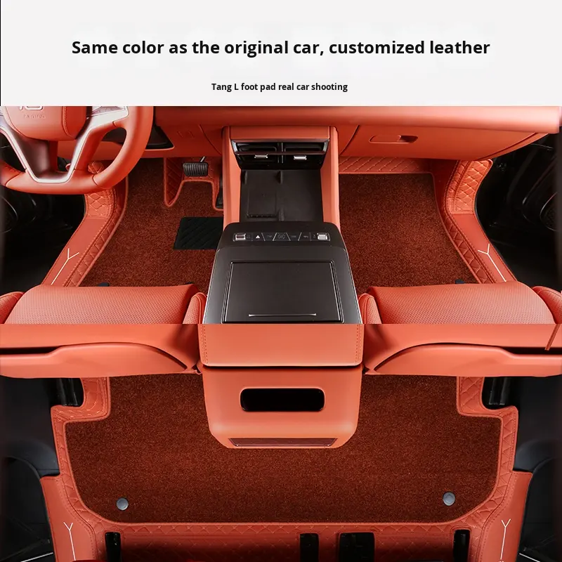 Tapis de sol complets en cuir à motif écossais entièrement enveloppés de 10 mm d'épaisseur spécialement conçus pour l'intérieur de la voiture BYD Tang LDM&LEV
