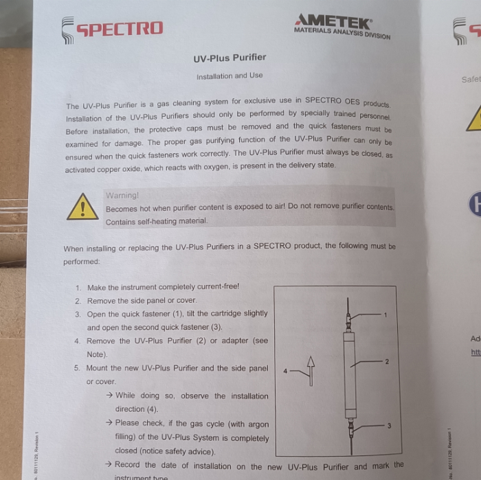 Nom du produit:Système d'épuration des gaz Spectro METEK Purificateur UV Plus
