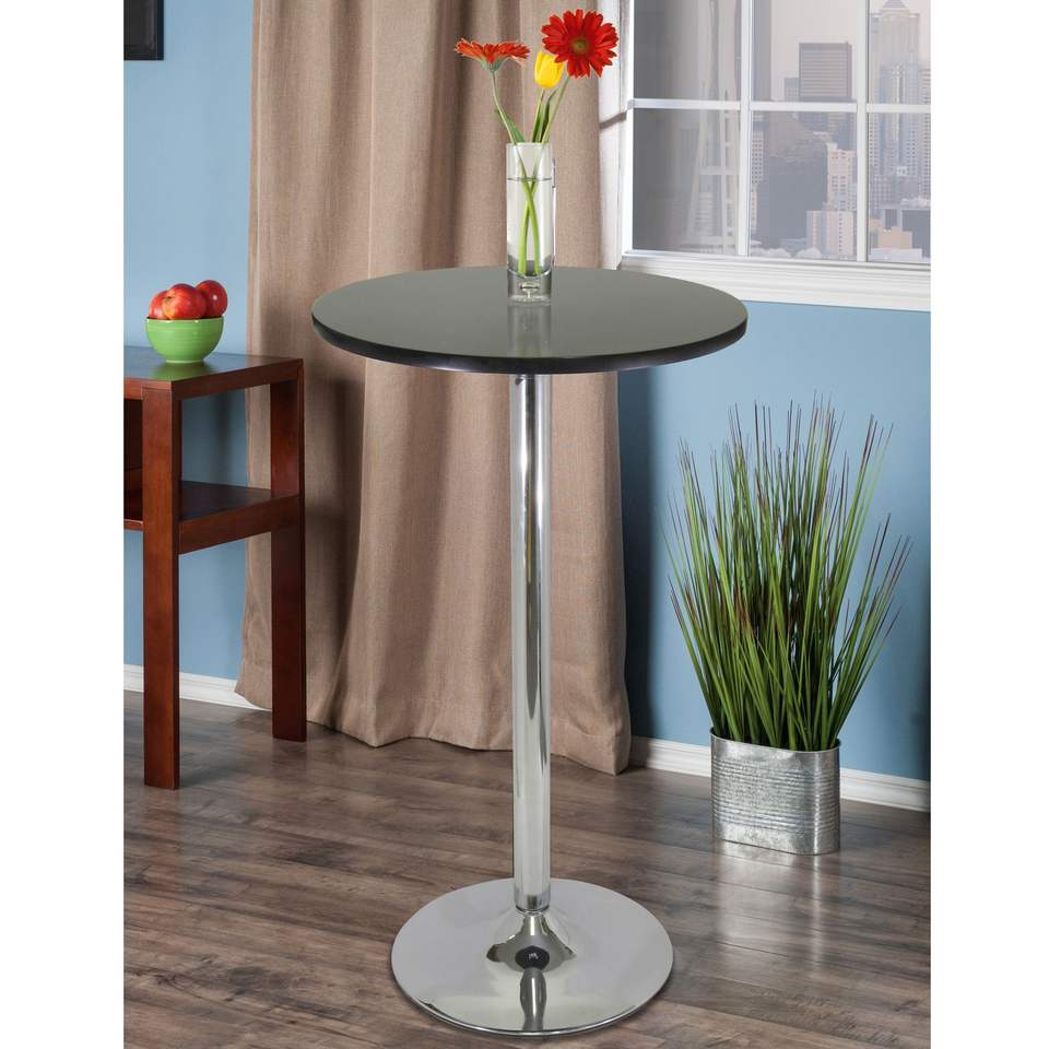 Table de pub ronde noire Spectrum de 24 po avec accessoires pour plats et assiettes chromés