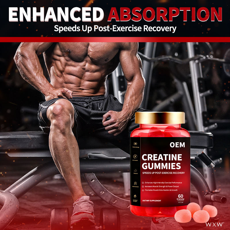 Accélère la récupération après l'exercice Gummies à la créatine Suppléments de créatine monohydratée Améliore les performances de l'exercice de haute intensité