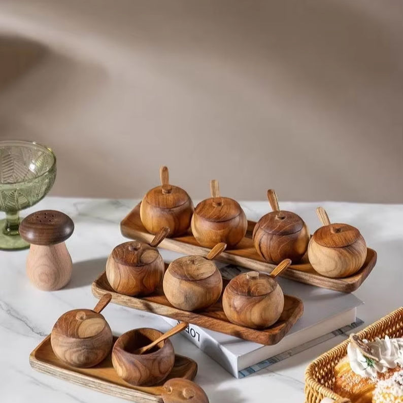 Boîte à épices et boîte à bijoux en bois, écologique, résistante au lave-vaisselle et au four, décoration d'intérieur, porte-épices