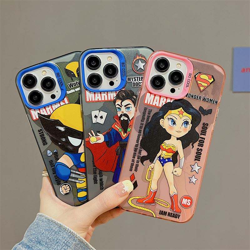 Étui de téléphone portable sans fil résistant aux chocs et imperméable en PC/acrylique avec design de dessin animé Spider-Man pour 17 16 15 14 13 Pro Max