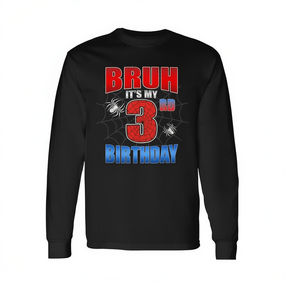 T-shirt à manches longues pour garçon de 3 ans, col rond, impression numérique, motif toile d'araignée, chemise de fête