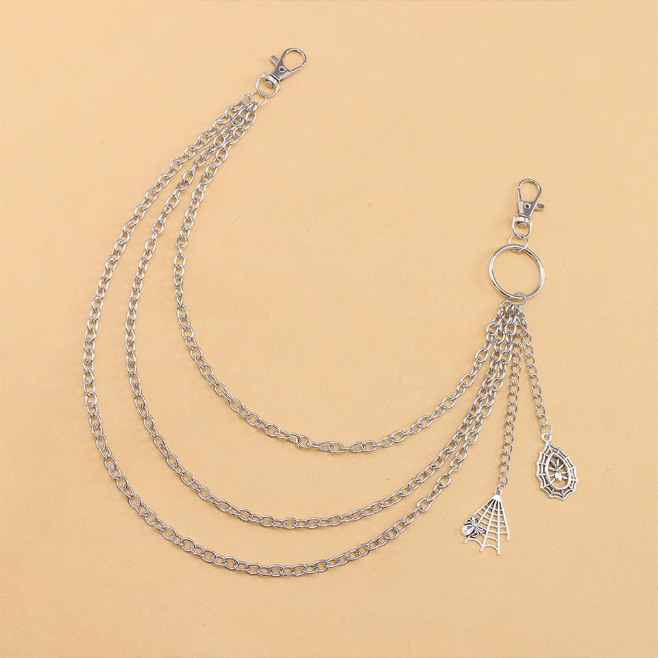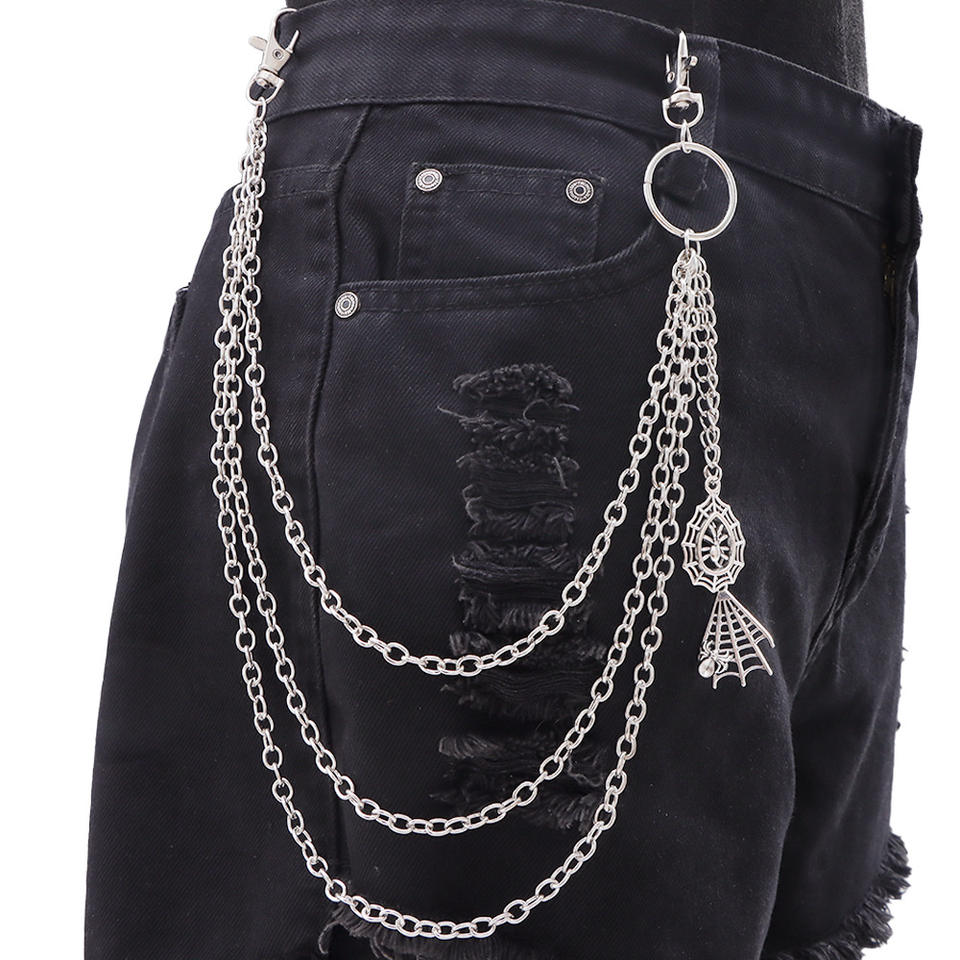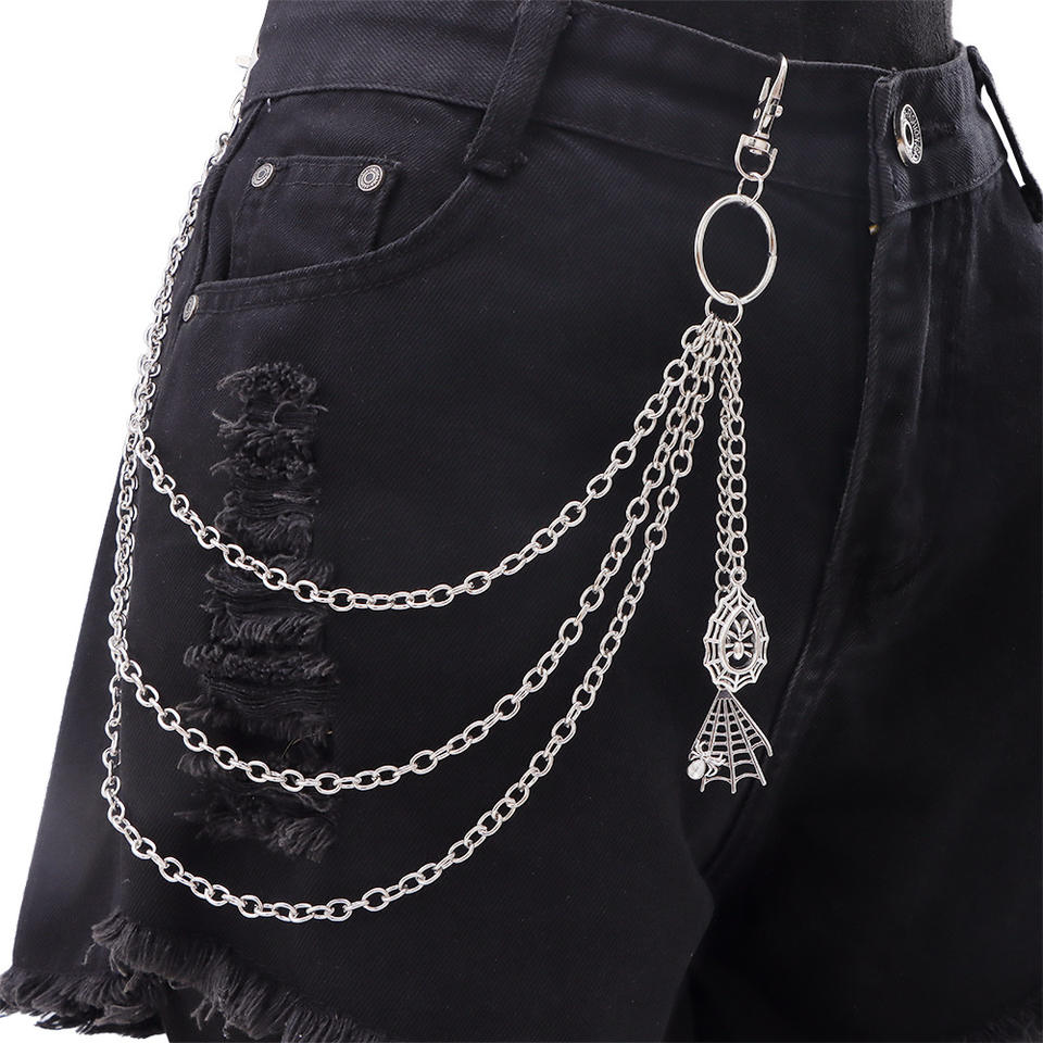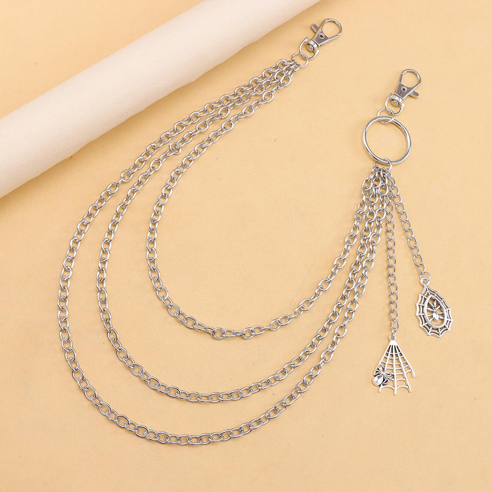 Chaîne de pantalon multi-couches en métal avec pendentif toile d'araignée, argent tibétain, style décontracté hip-hop, accessoire pour vêtements en jean
