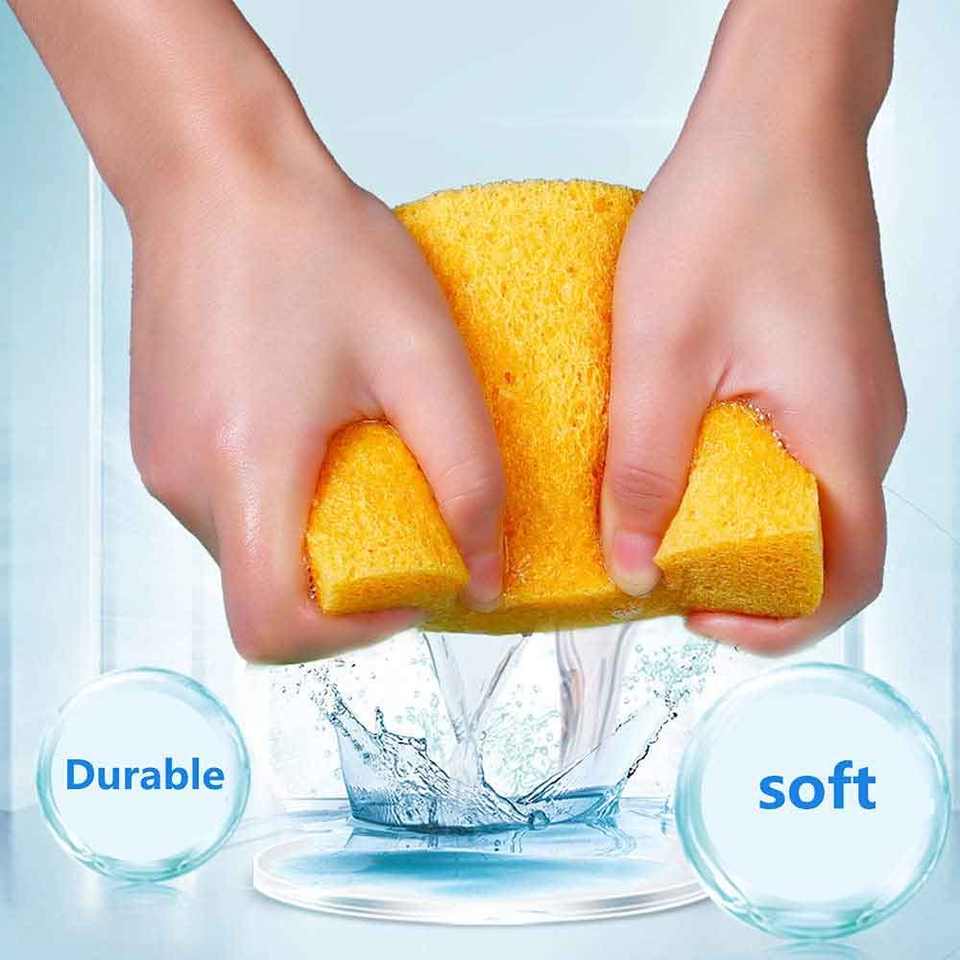 2, 50 pcs d'éponge de cellulose emballée dans un sac en papier opp imprimé.