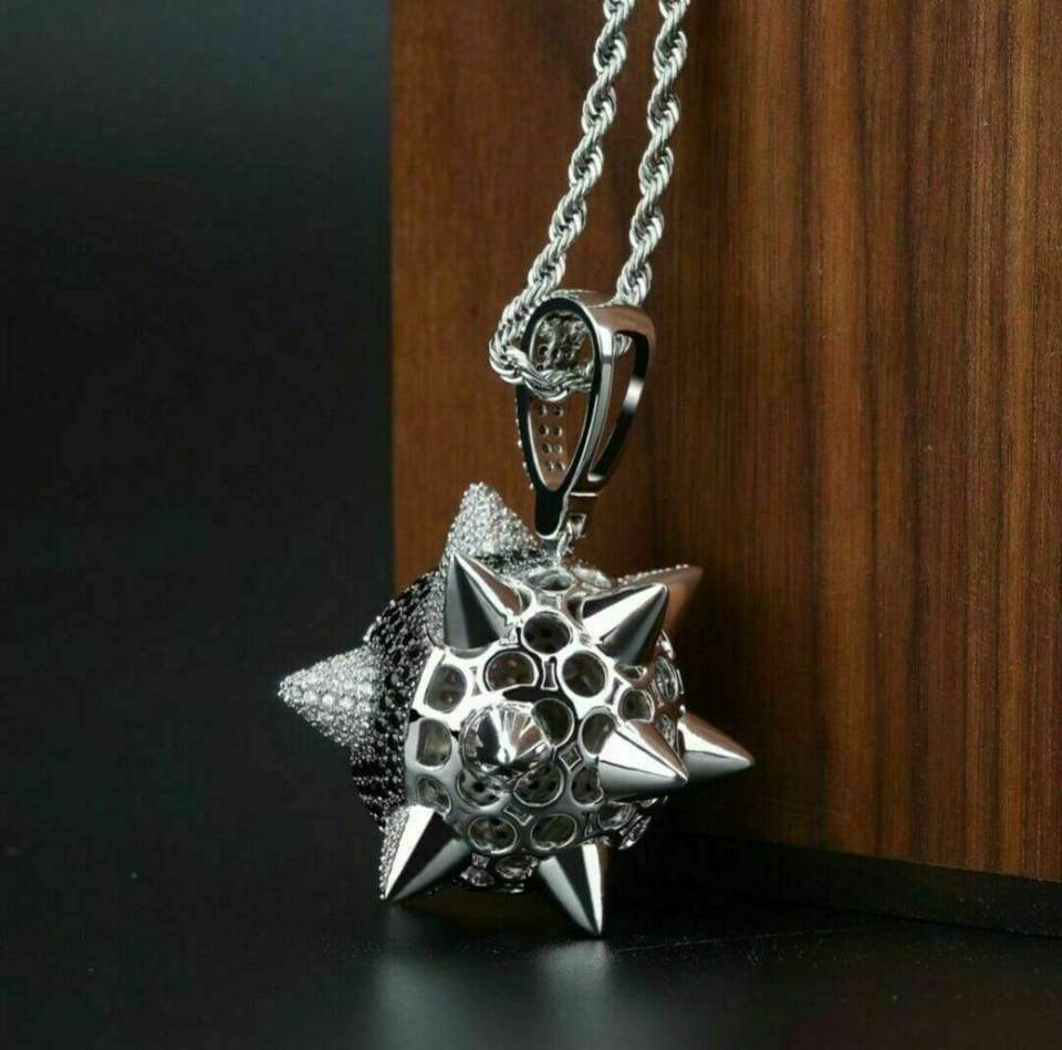 Spike Ball Design Hip Hop Certifié Pendentif En Or 24 "Corde Chaîne Diamant Collier Bijoux Cadeau pour Votre Mari