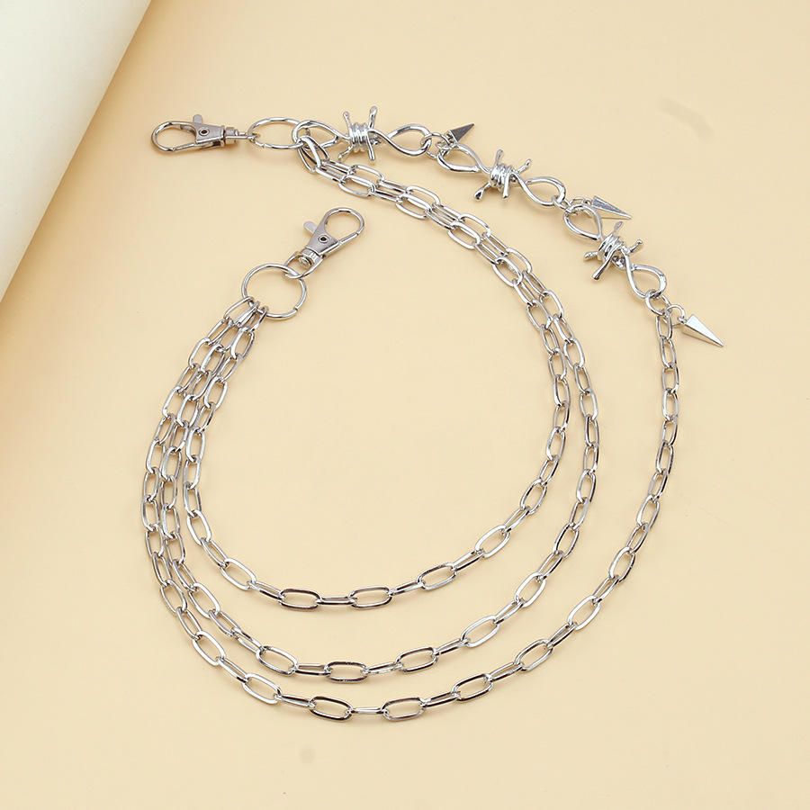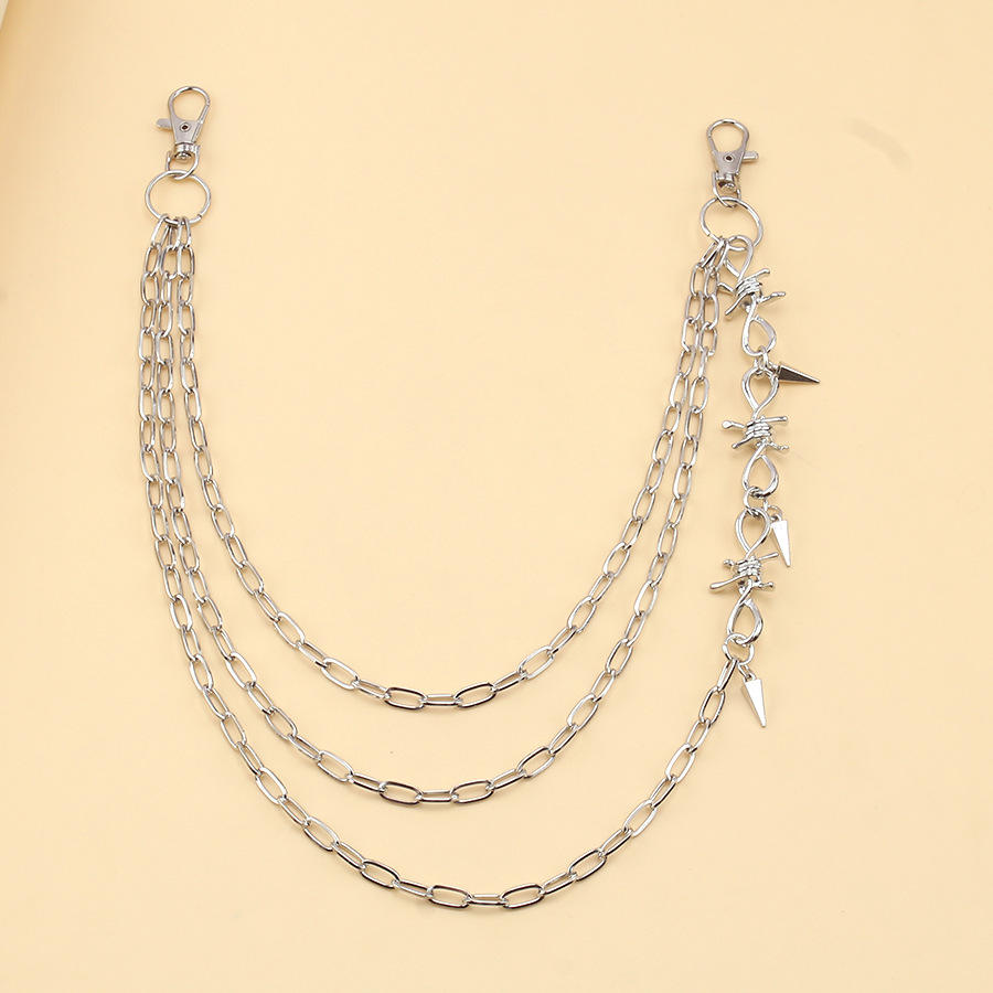 Chaîne de pantalon multicouche avec pendentif pointe, en argent tibétain, style Hip Hop, chaîne de taille et de corps pour boîte de nuit