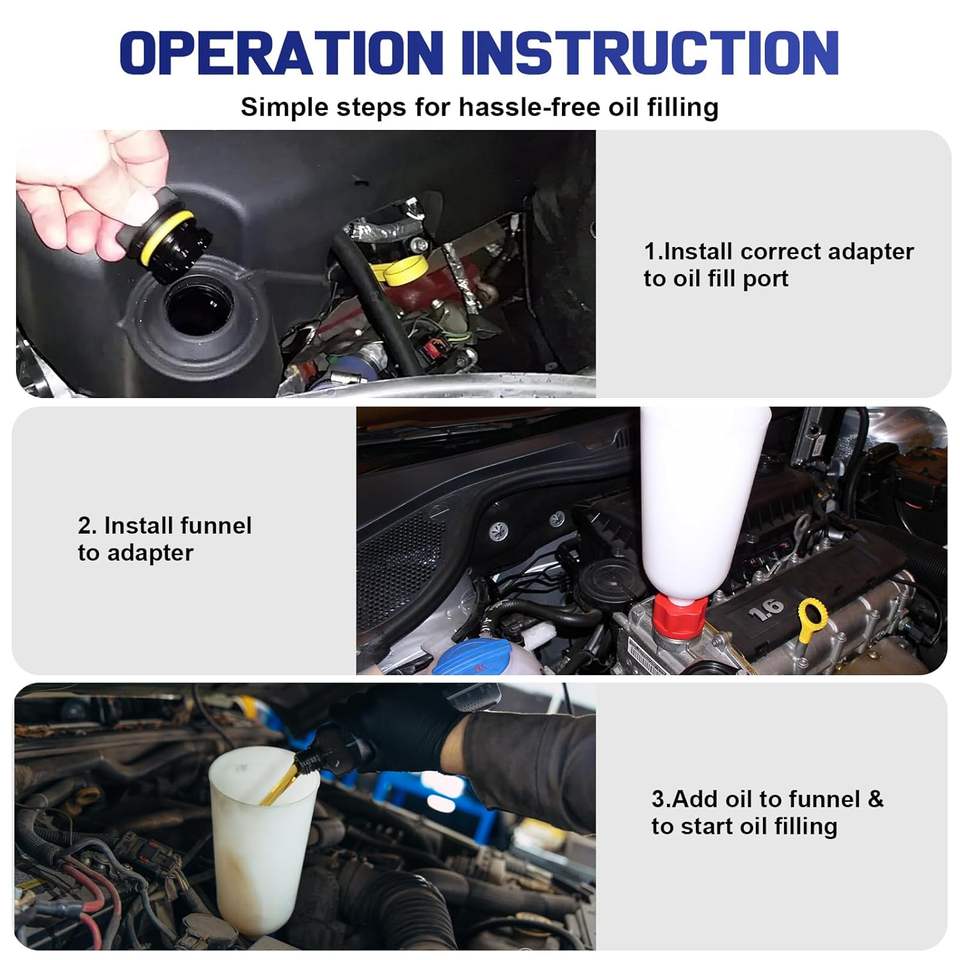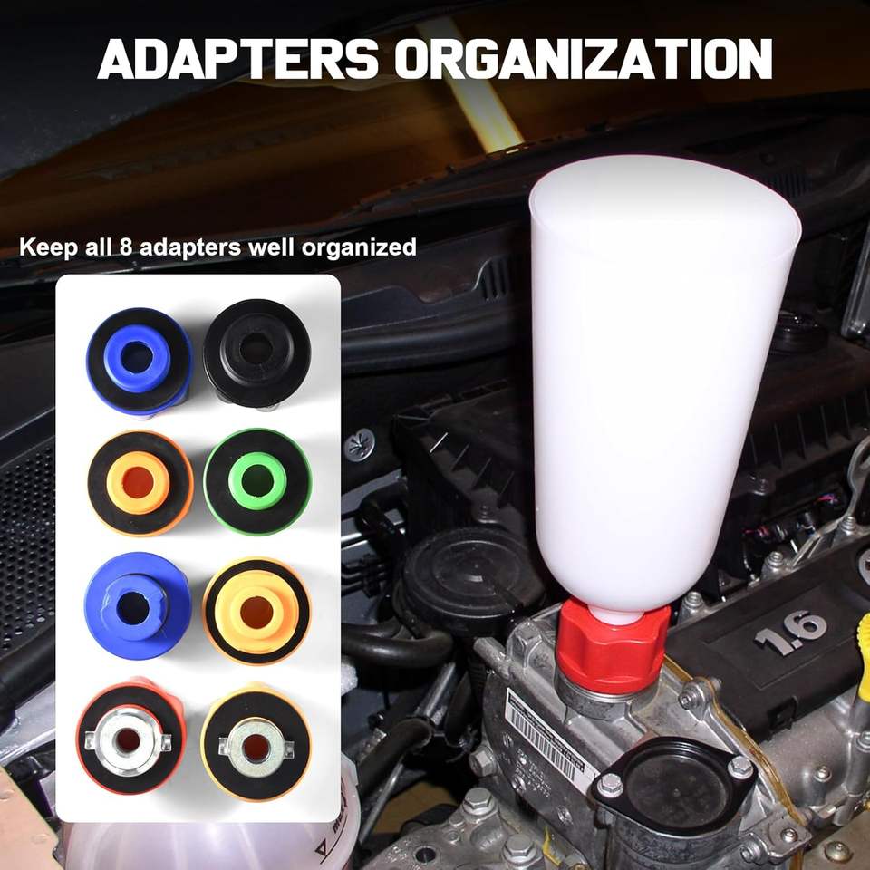 Ensemble d'entonnoirs anti-fuite pour huile moteur 2L avec 8 adaptateurs, en nylon, pour un changement d'huile mains libres pour voitures