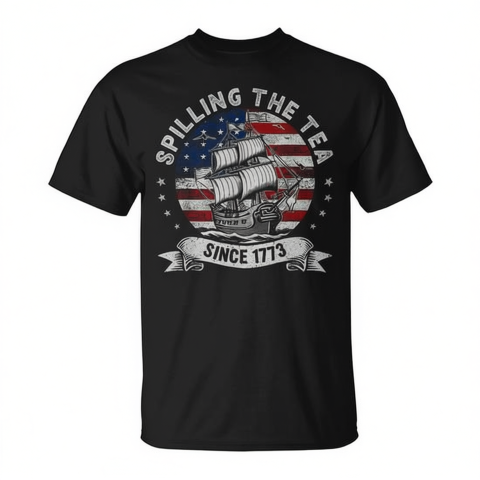T-shirt « Spilling The Tea Since 1773 » rouge, blanc et bleu pour le 4 juillet