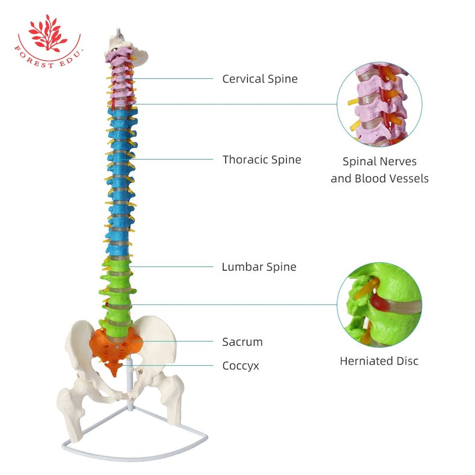 Modèle de colonne vertébrale FRT010 Science médicale Colonne vertébrale flexible grandeur nature avec caput pelvien Femoris et sciences médicales à code couleur