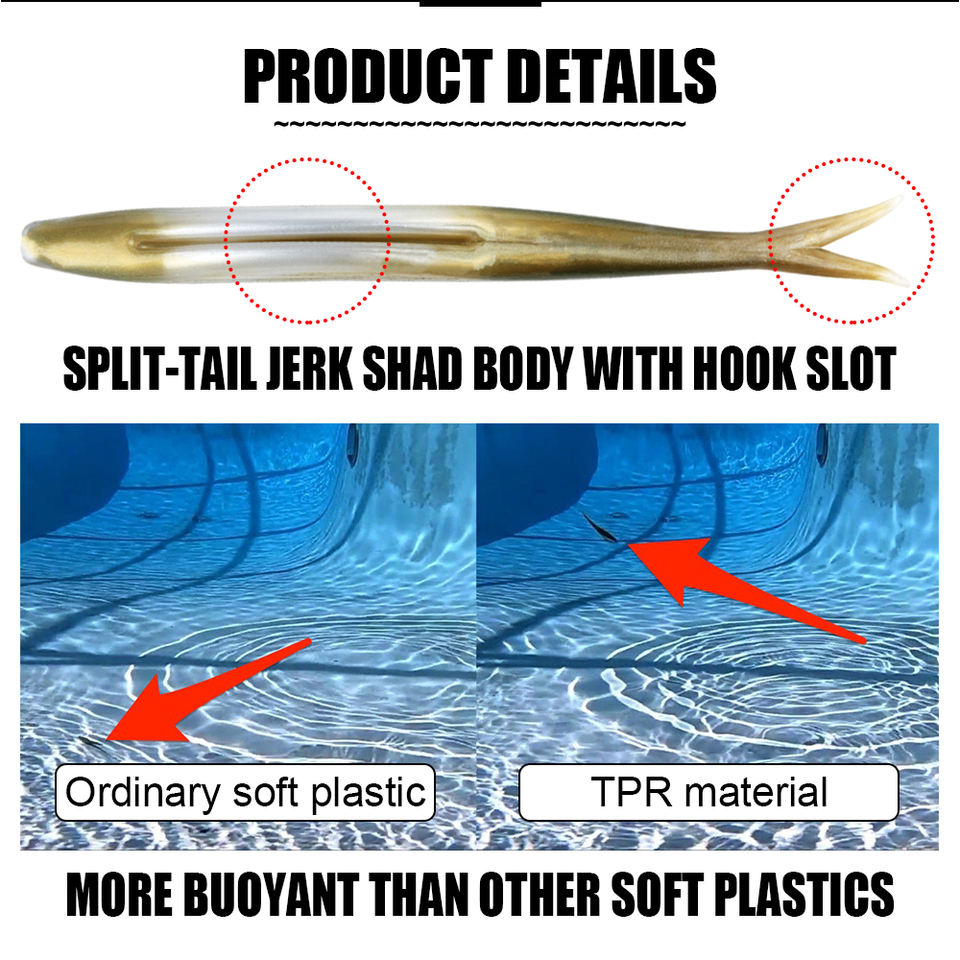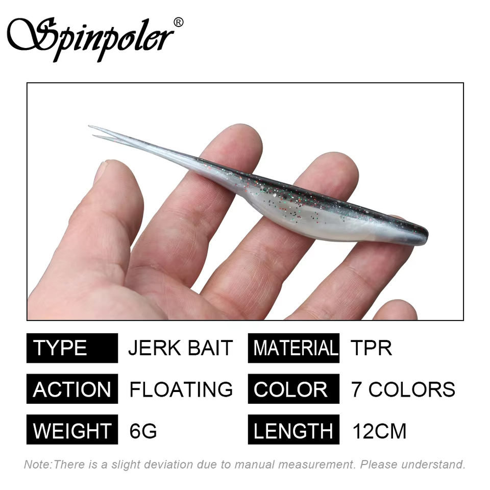 Spinpoler TPR Floating Jerk Bait Shad Minnow Soft Fishing Lure 10x Strong Artificial Bait Split Tail Drop Shot Bass Pike Zander